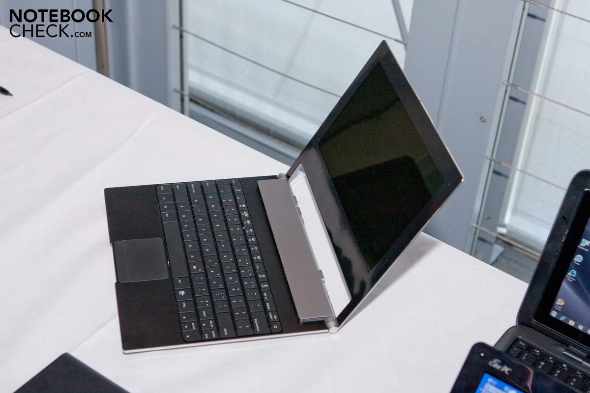 Last but not least wurden einige Notebook-Studien gezeigt, unter anderem basierend auf der Oaktrail-Plattform, die besonders dünne Gehäuse ermöglichen soll. Auch Ausblicke auf einen breiten Einsatz der Atom-Prozessoren in kommenden Tablet-PCs (Fujitsu Stylistic Q550) wurden gegeben.