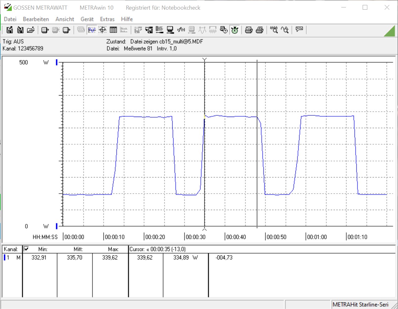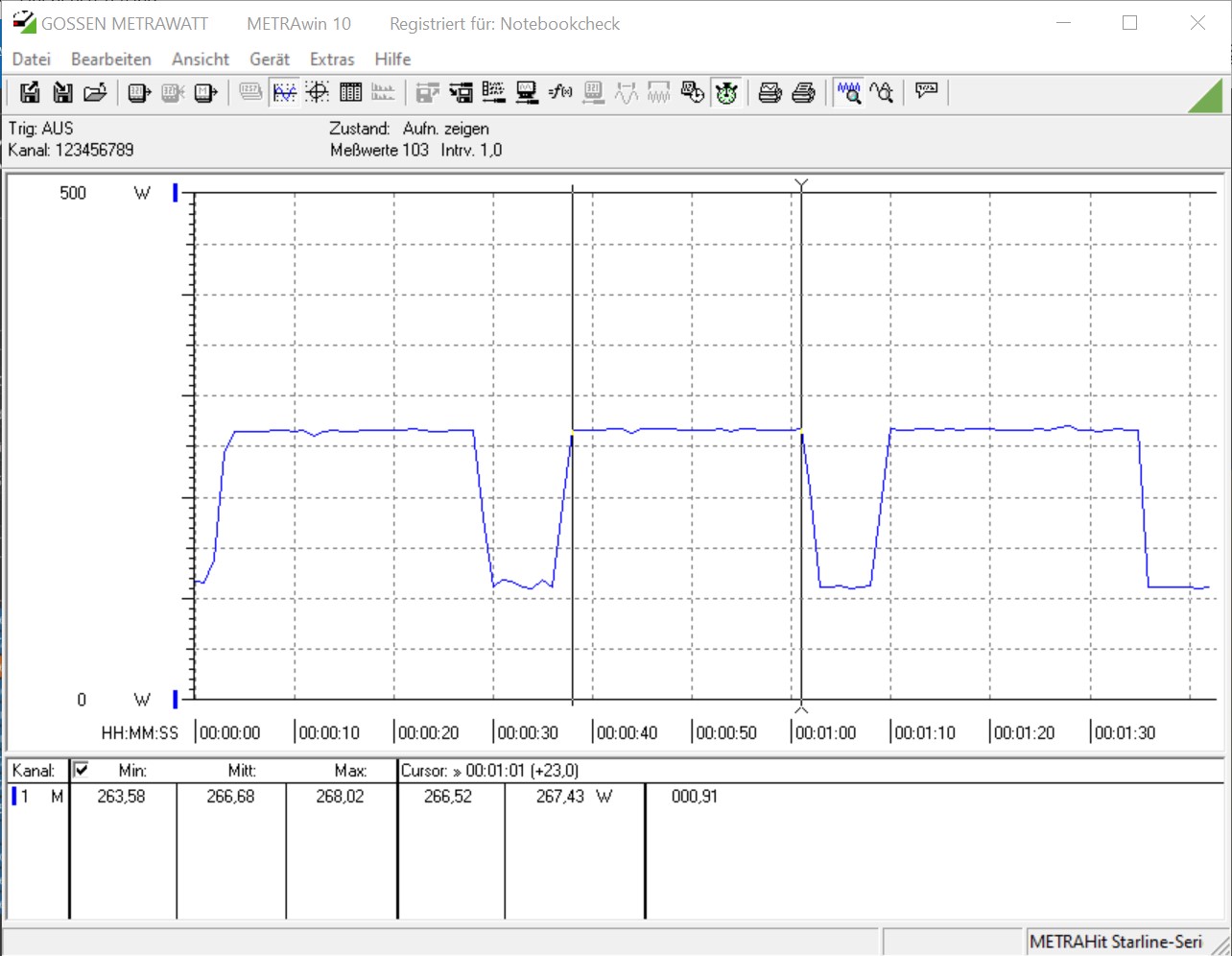 Der Energieverbrauch ist das große Thema bei den neuen Comet Lake-S Prozessoren. Intel hat die maximale Leistung des Intel Core i9-10900K für bis zu 250 Watt freigegeben, welche maximal 56 Sekunden anliegen dürfen. Mit ca. 269 Watt verbraucht unser Testsystem beim Cinebench-R15-Multi-Test deutlich mehr Energie, als AMD’s 16 Kerner in der gleichen Disziplin. Der kleinere Core i5-10600K ist hier mit 173 Watt deutlich sparsamer.