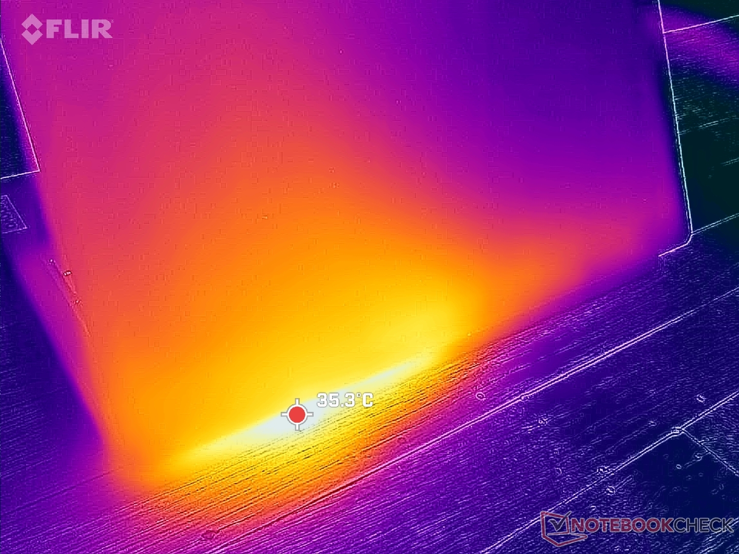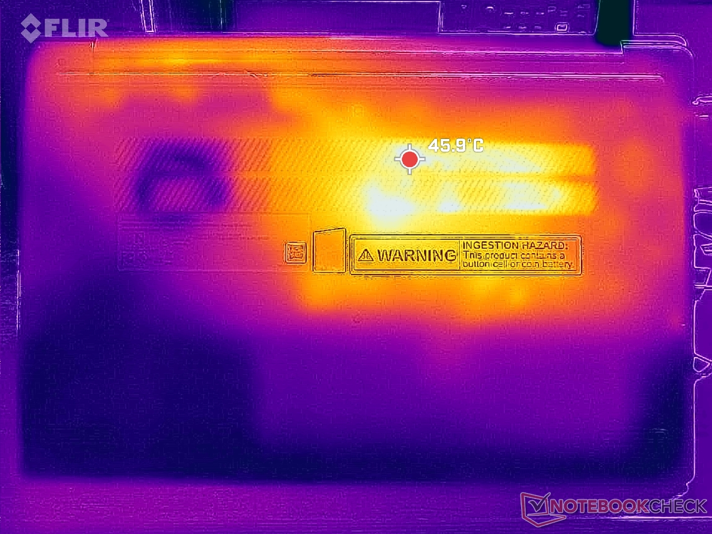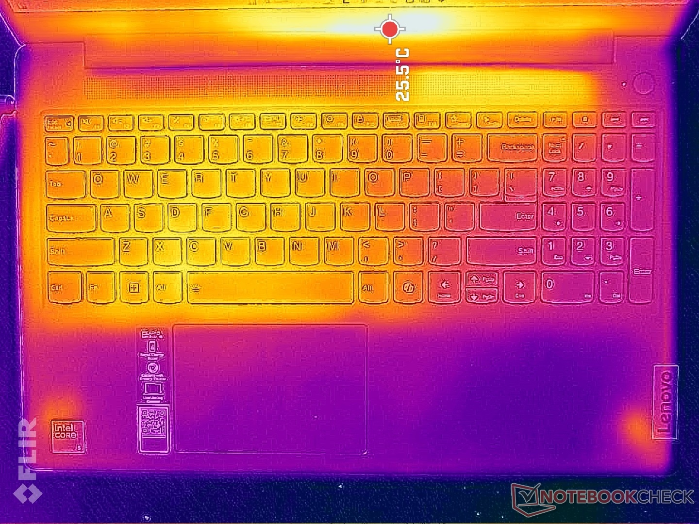 Die Oberflächentemperaturen sind auf der linken Gehäuseseite höher als auf der rechten. Der Hotspot auf der Tastatur kann bei anspruchsvollen Aufgaben bis zu 40 °C erreichen. Dies ist zwar spürbar, beeinträchtigt jedoch in der Praxis bei weniger intensiven Aufgaben wie Surfen oder Arbeiten mit Excel nicht. Alternativen wie das HP 250 G9 oder das Acer Aspire 3 A315 können im Durchschnitt sogar noch wärmer werden, jedoch befinden sich ihre Hotspots eher auf der Rückseite, wo der Hautkontakt geringer ist.