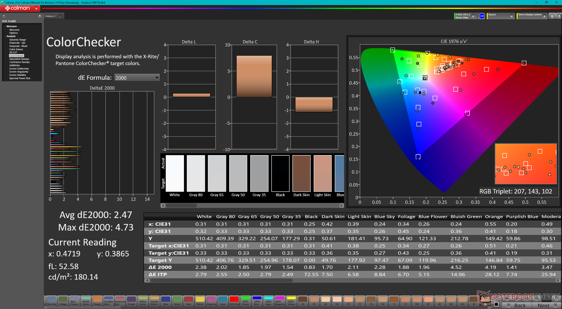 ΔE ColorChecker Calman: 2.47 | ∀{0.5-29.43 Ø4.79}