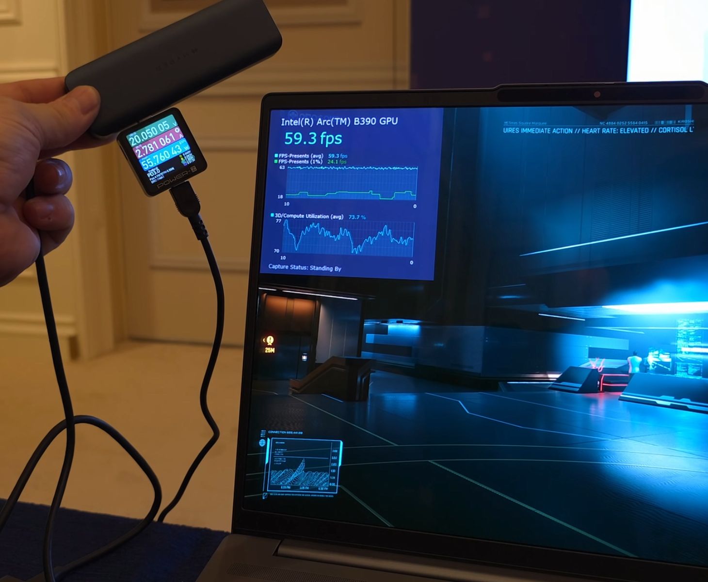 Einen ersten Eindruck von der Gaming-Leistung von Panther Lake liefert ein Hands-on-Video von ETA Prime. In dem Video ist ein Intel Panther Lake Prozessor in einem Referenz-Laptop von Lenovo zu sehen, der für Testzwecke bereitgestellt wurde. Der YouTuber weist darauf hin, dass es sich bei dem gezeigten Notebook nicht um ein fertiges Serienmodell handelt. Er gibt jedoch an, dass die Prozessorkonfiguration in mehreren künftigen Laptops zum Einsatz kommen soll.