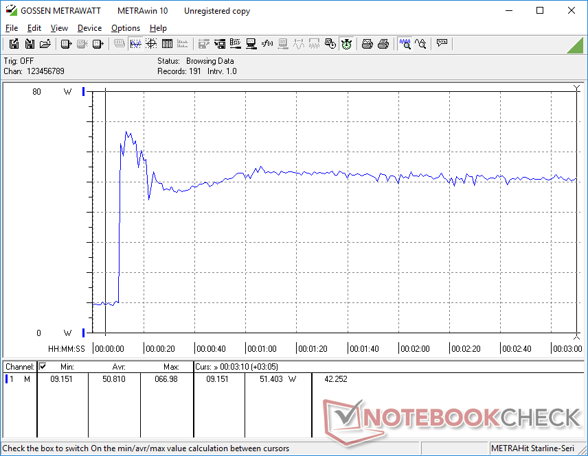 Der Energieverbrauch ist unter Volllast grundsätzlich höher als bei vergleichbaren Subnotebooks mit CPUs der älteren Generation. Außerdem ist er etwas höher als beim ProBook 440 G9 und dessen i7-1255U, obwohl unser i5-1345U weniger Leistung liefert.