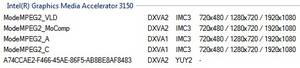 Auch eine Hardware-Dekodierung von aktuellen HD Videos wird von der GMA 3150 nicht unterstützt. Derzeit unterstützen die Treiber nur DXVA Hooks für MPEG2 (bis 1920x1080 VLD, MoComp, A, C).