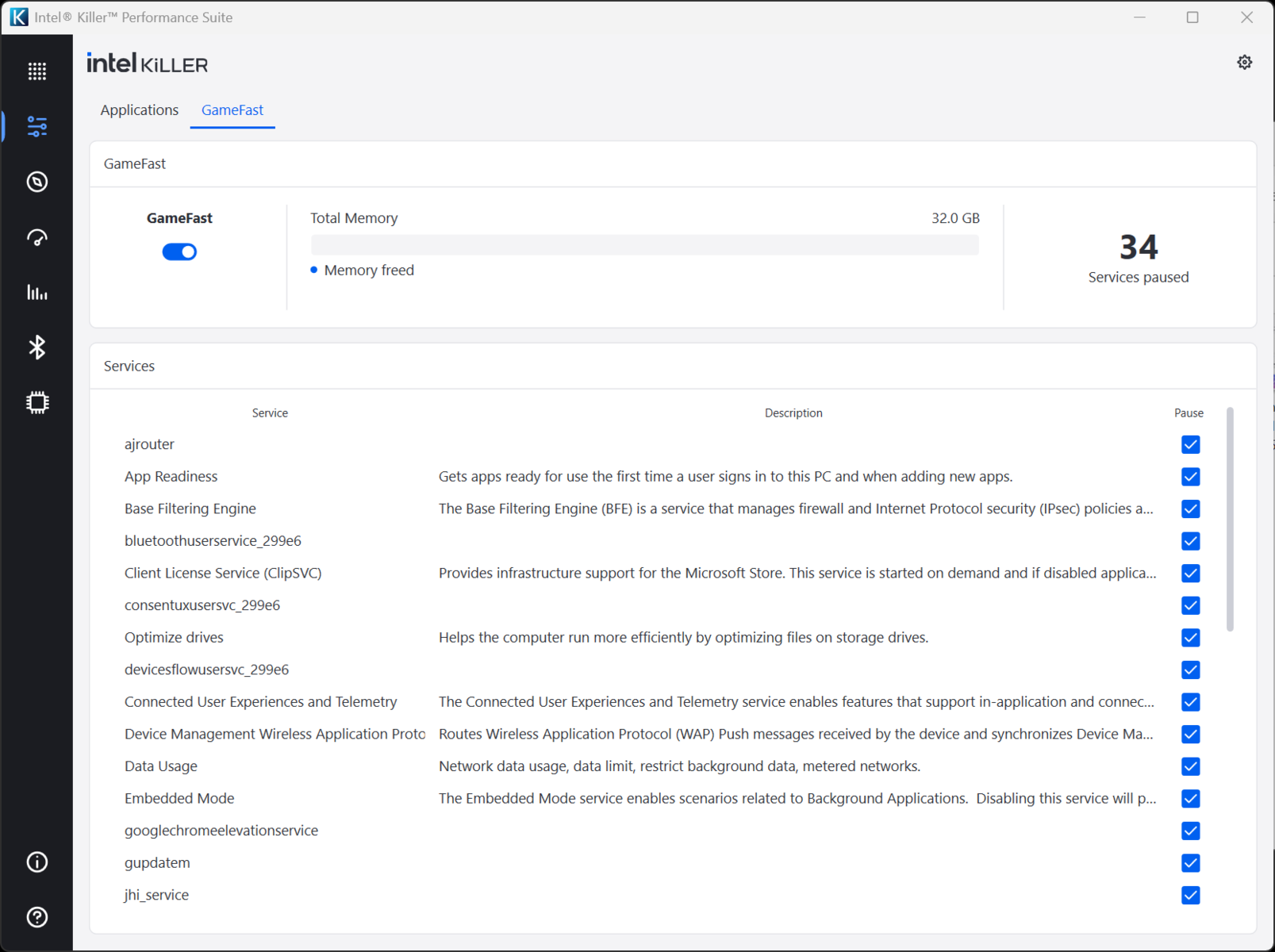 Die neuen Killer-Wi-Fi7-Module von Intel nutzen die Vorteile der neuen WLAN-Technologie hervorragend aus und geben Nutzern die Möglichkeit, ihre Interneterfahrung auf die jeweiligen Bedürfnisse anzupassen. Mit der Killer Performance Suite steht dabei eine übersichtliche Oberfläche zur Verfügung, die selbstständig Empfehlungen basierend auf der aktuellen Netzwerkumgebung ausspricht. Alle Features sind schnell zugänglich und wenn die Funktionen aktiviert sind, kümmert sich die Software automatisch um die Priorisierung bzw. die Auswahl der besten Verbindungen. Auch beim Online-Gaming muss man sich daher keine Sorgen mehr machen, ob plötzlich noch andere Familienmitglieder das Netzwerk nutzen, sondern kann sich voll und ganz auf die Spielerfahrung konzentrieren. Zudem können nicht benötigte Hintergrunddienste pausiert werden und es steht eine automatische Übertaktung (XTU One-Click) zur Verfügung, mit der man den Prozessor einfach und komfortabel übertakten kann.