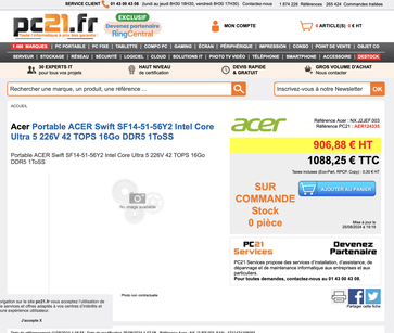 - Acer Swift SF14-51-56Y2 (Core Ultra 5 226V / 16 GB) – 1.088 Euro