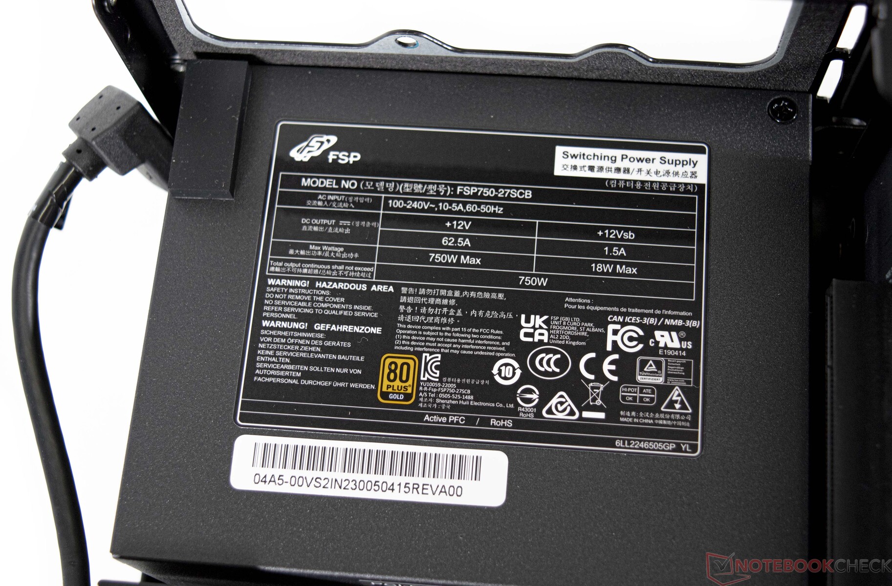 Die Stromversorgung regelt ein 750-Watt-Netzteil im SFX-Format. Mit diesem ist man auch unter Vollast auf der sicheren Seite, denn im Schnitt werden beim Spielen 499 Watt an der Steckdose für das System gemessen. In Spitzen sehen wir auch mal 544 Watt, was im Test zu keinen Problemen führte. Mit 350 Watt sorgt die Grafikkarte für den meisten Energiebedarf beim Zocken. Von einer Grafikkarte mit einer noch höheren Leistungsaufnahme raten wir jedoch ab. Der neue 12VHPWR-Anschluss kann ohnehin nur maximal 300 Watt zur Verfügung stellen. Das besagt jedenfalls die Aufschrift am Stecker selbst. Alternativ gibt es noch drei 6+2-PCIe-Stecker