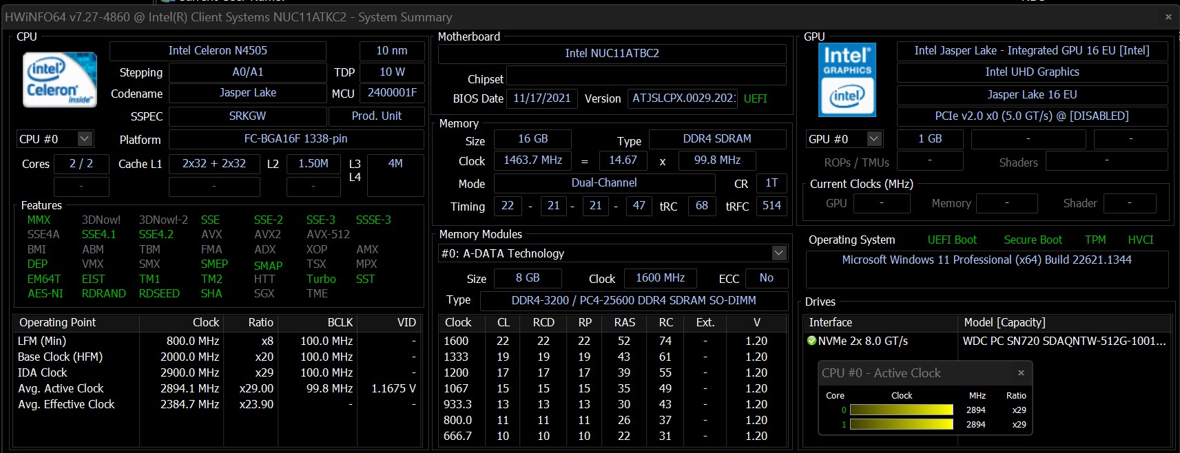 Intel NUC11ATKC2, N4505