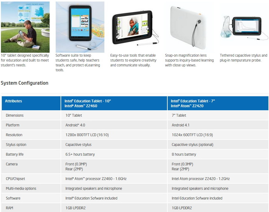 Intel Education Tablets: http://www.intel.com/content/www/us/en/education-solutions/tablets.html