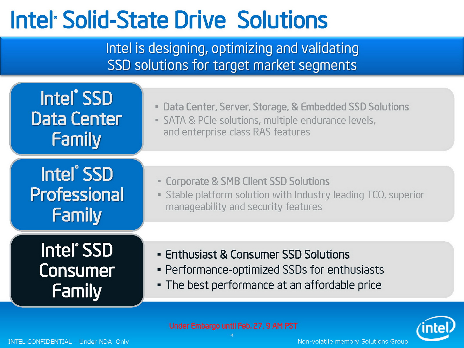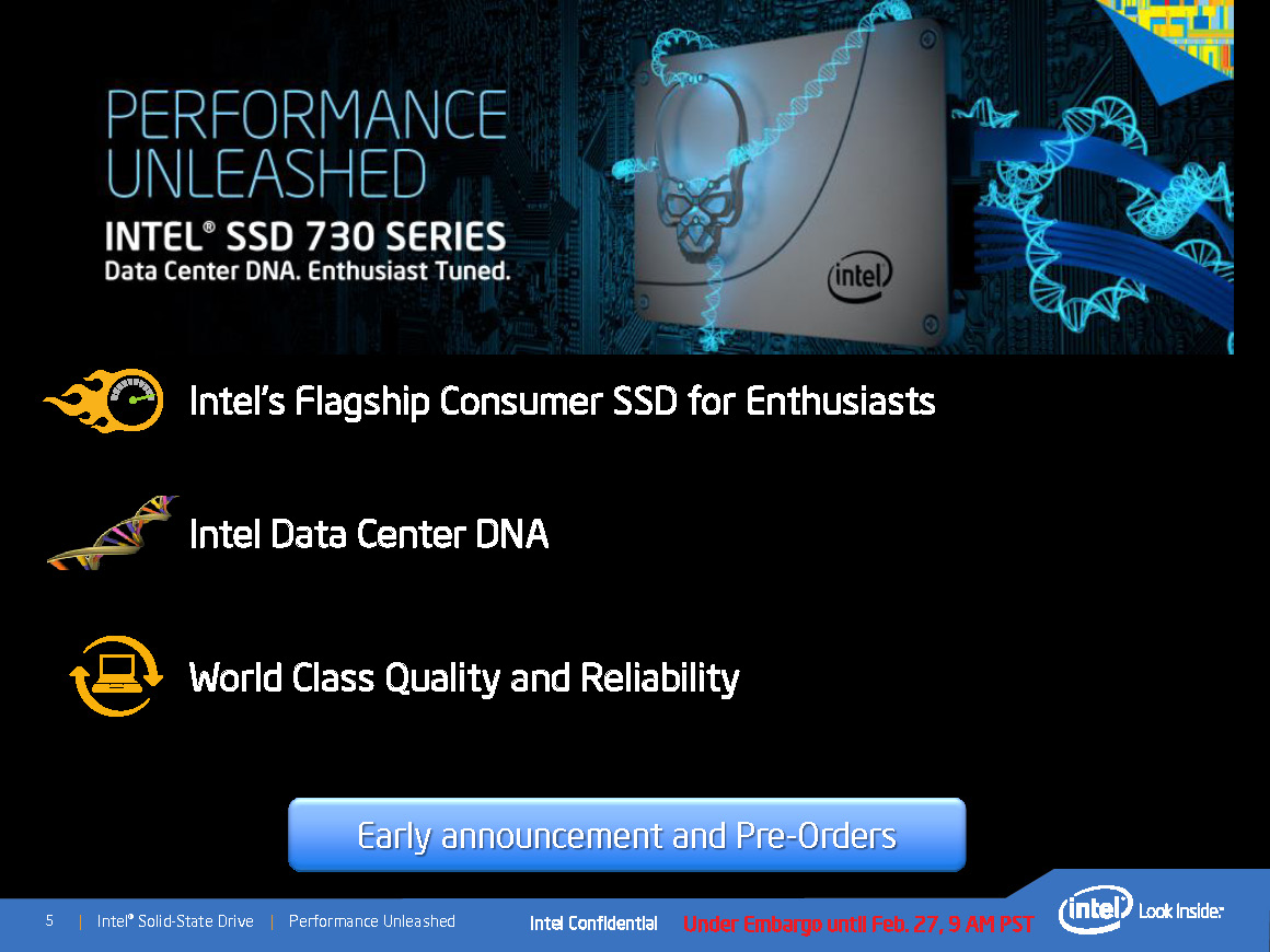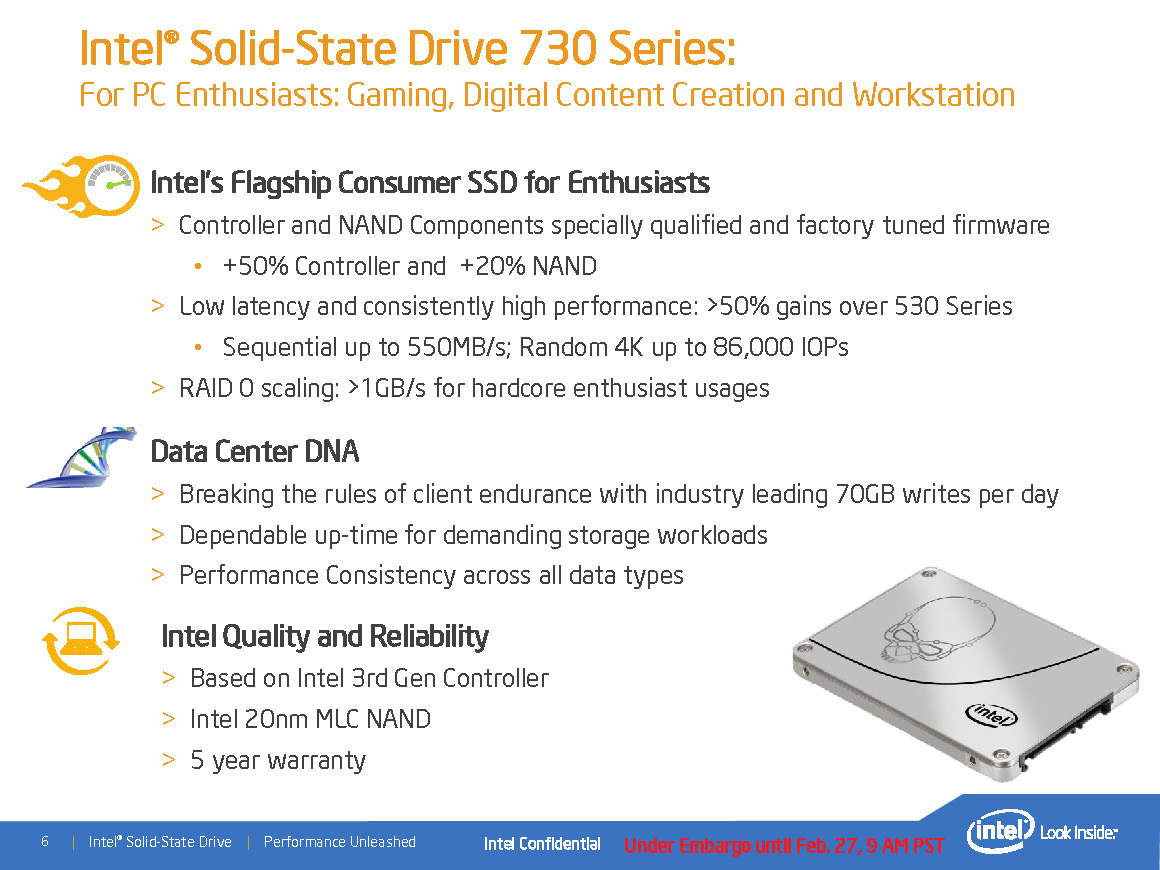 Intel hat heute seine neue Flaggschiff-Consumer-SSD der Serie SSD 730 offiziell präsentiert. Die neue und auf Intels 20-nm-MLC-Flash basierende SSD 730 Serie kommt mit einer Bauhöhe von 7 Millimetern im 2,5-Zoll-Formfaktor daher und richtet sich als schnelle SSD-Lösung vor allem an Gamer und professionelle Anwender, die Wert auf eine performante und zuverlässige Speicherlösung mit geringer Latenz und hoher Leistung suchen.