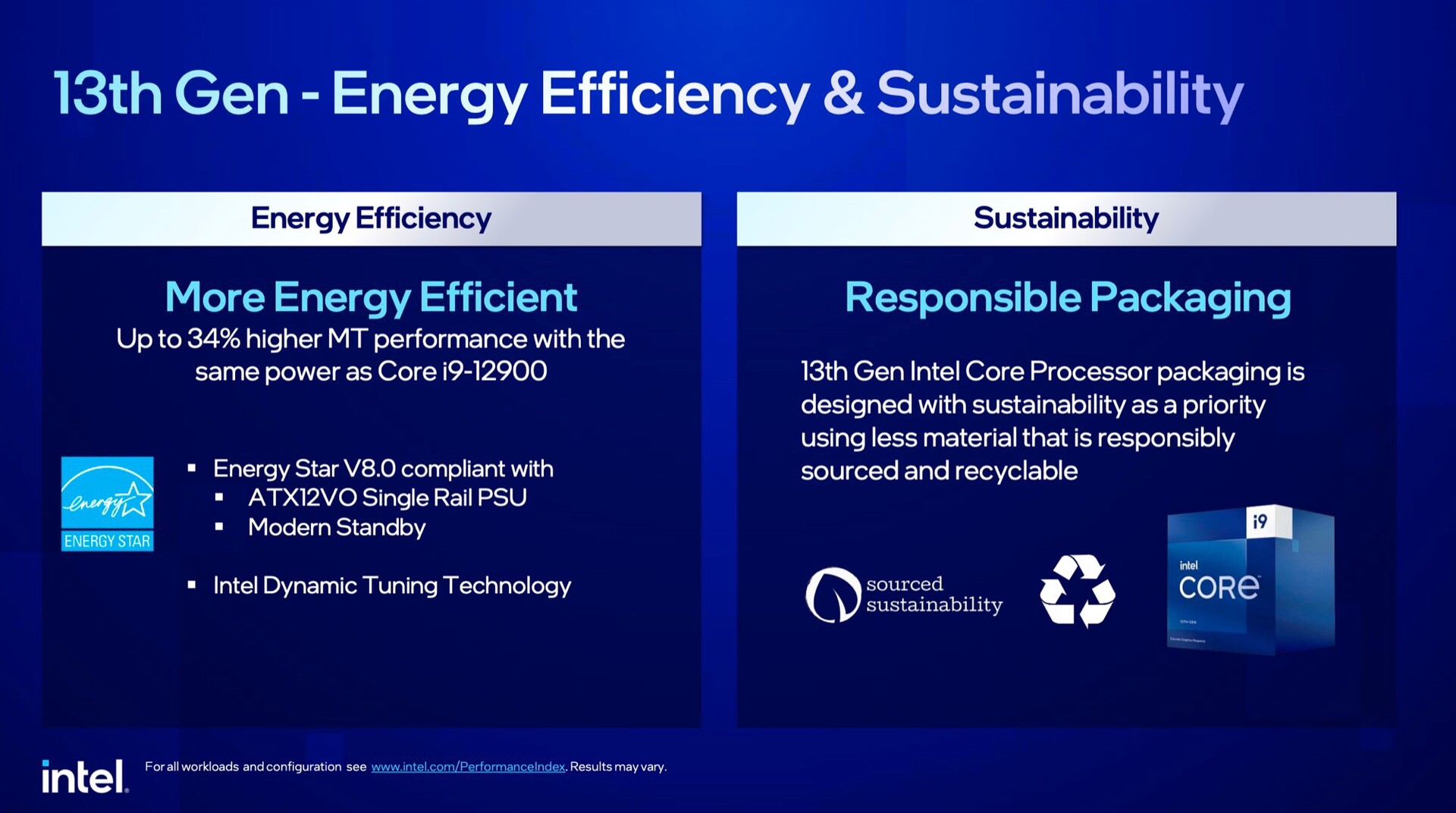 Intel hat nur für den Core i9-13900 Benchmark-Ergebnisse veröffentlicht, der im Vergleich zum Core i9-12900 eine bis zu 34 Prozent bessere Multi-Thread-Performance bieten soll. Das ist kaum überraschend, nachdem die Anzahl der Effizienz-Kerne von acht auf 16 verdoppelt wurde.