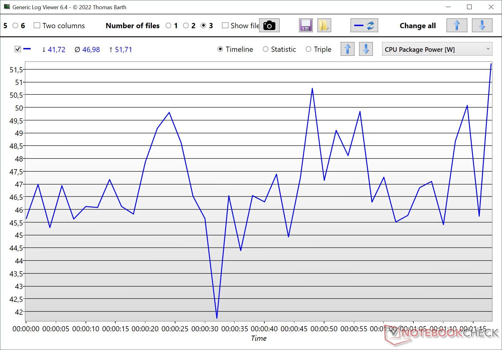 | Power Consumption / Cinebench R23 Single (external Monitor) | |