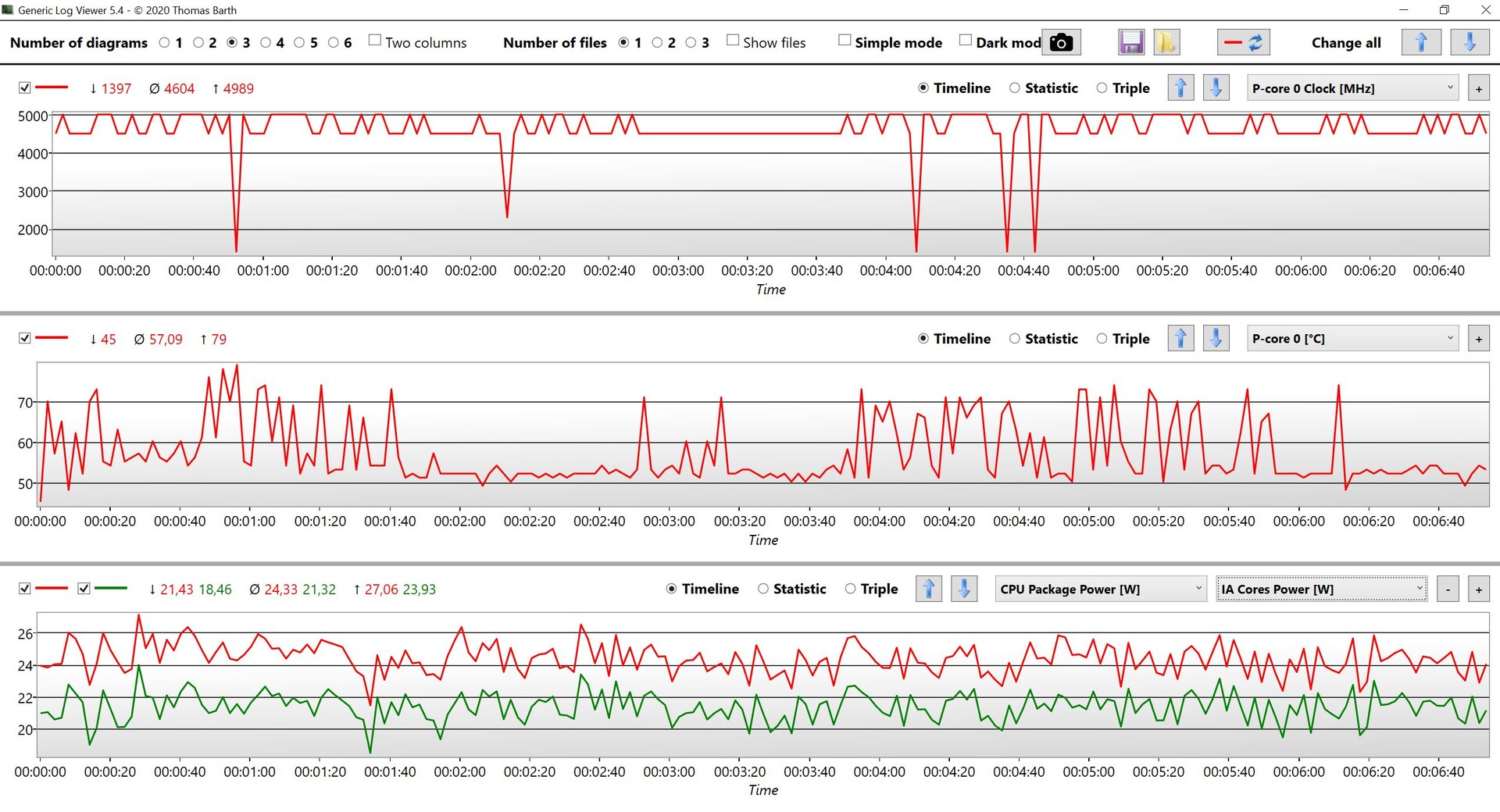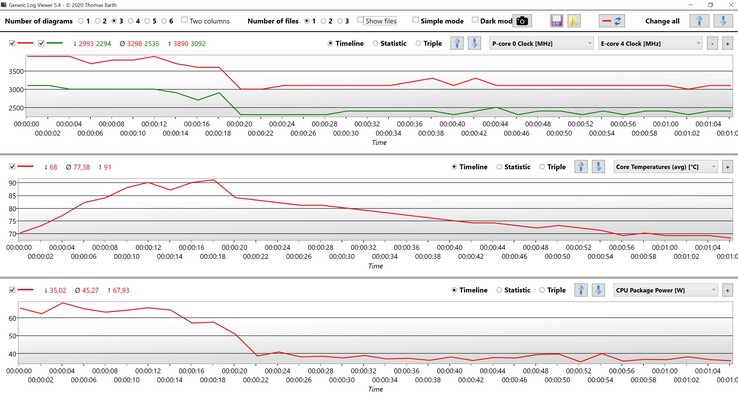 Wie schon in unserer Analyse der Alder-Lake-U-Chips haben wir uns die Multi-Core-Leistung des neuen Raptor Lake Core i7-1360P bei verschiedenen TDP-Werten angesehen und die Werte jeweils mit der Software Throttle Stop begrenzt. In der nachfolgenden Tabelle haben wir die Ergebnisse des Core i7-1360P mit dem Core i7-1260P (ThinkPad T14 G3) und dem Core i7-12700H (HP ZBook Power 15 G9) bei 28 Watt, 35 Watt und 45 Watt verglichen. Der neue Chip hat bei allen TDP-Werten Vorteile gegenüber dem alten Core i7-1260P, der Core i7-12700H ist aber immer noch schneller, schon bei 28 Watt. Im Prinzip macht es also schon ab einer dauerhaften Kühlleistung von 28 Watt keinen wirklichen Sinn mehr, den Core i7-1360P anstelle des Core i7-1370P oder dem Core i7-13700H zu wählen (abgesehen von den Kosten natürlich).