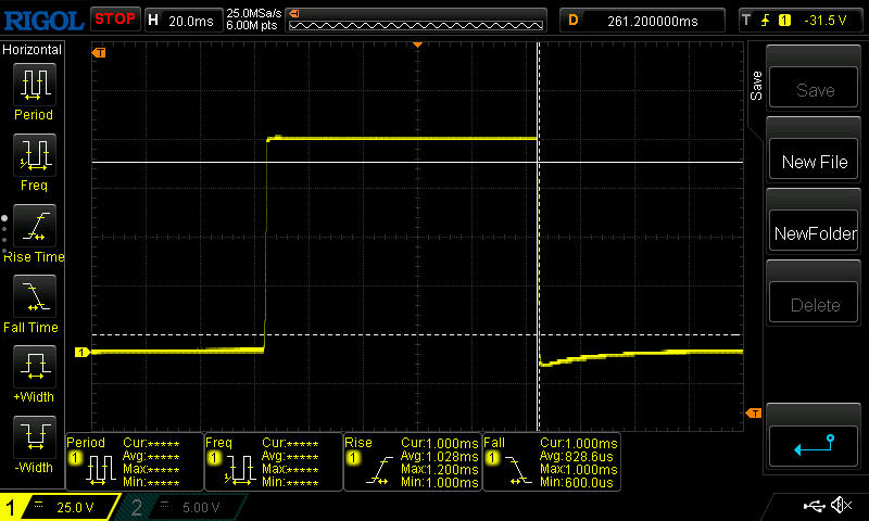 | 2 ms ... steigend ↗ und fallend ↘ kombiniert | ↗ 1 ms steigend | |