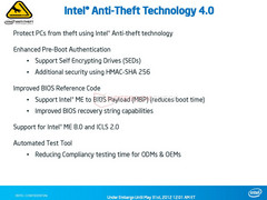 Das Thema Sicherheit spielt bei Intel für seine Ultrabooks hingegen in Zukunft eine noch wichtigere Rolle. Mit der "Identity Protection Technology" (IPT) will Intel den Identitätsklau im Internet einen Riegel vorschieben. Mit seiner BIOS-basierten "Anti-Theft Technology" (AT) in Version 4.0 will Intel die Ultrabooks der Kunden noch besser schützen und mit der neuen Ultrabook-Generation auch technisch versierten Dieben das Leben noch viel schwerer machen. Weitere Informationen zu den technischen Details finden sie in den Slides.