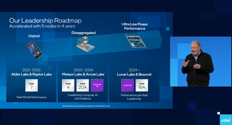 - 2024: Arrow Lake kombiniert die Intel 20A-Fertigung mit Tiles, die in externen Foundries hergestellt werden, die Architektur soll ansonsten Meteor Lake ähneln.