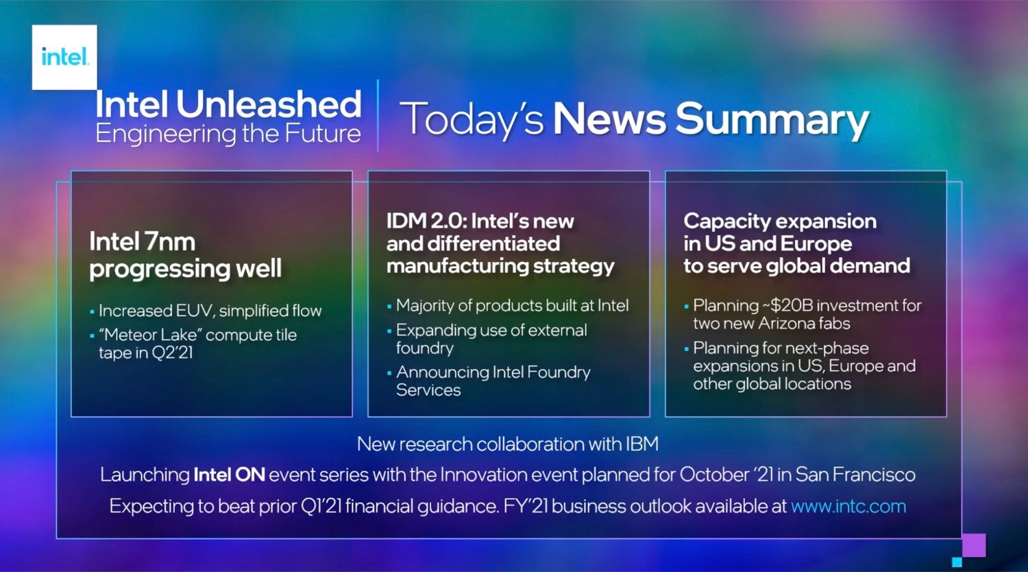 Intel hat bei der Präsentation von Partnern wie Qualcomm, Google, Microsoft, Amazon, Ericsson, IBM und Cisco gesprochen. Um die immense Nachfrage zu befriedigen, die das Angebot derzeit übersteigt, wird Intel gleich mehrere Fabriken in den USA bauen, doch auch in Europa wird weiter investiert.