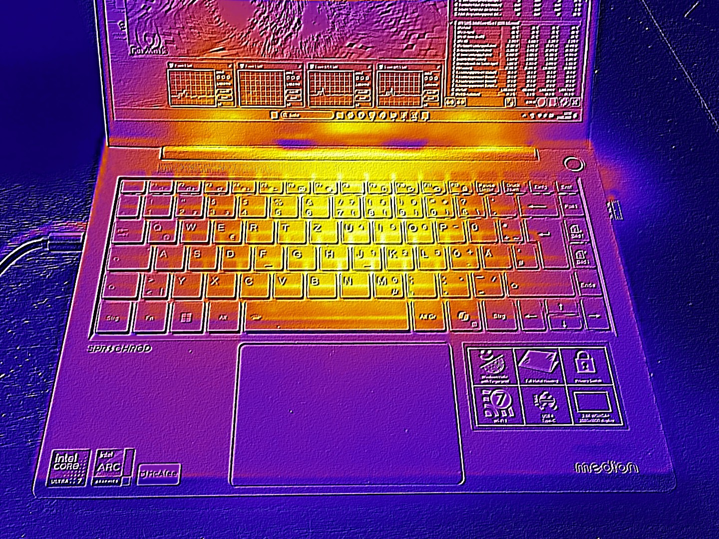 (+) Die Handballen und der Touchpad-Bereich sind mit gemessenen 31 °C kühler als die typische Hauttemperatur und fühlen sich dadurch kühl an.