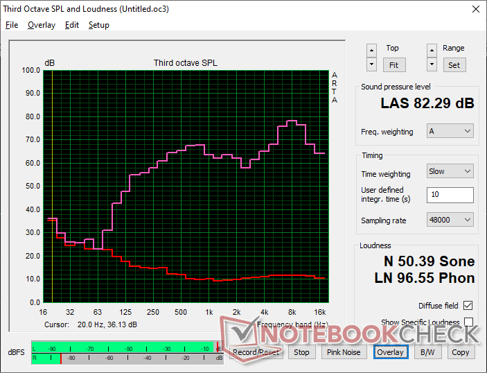 (+) | Die Lautsprecher können relativ laut spielen (82.2 dB)