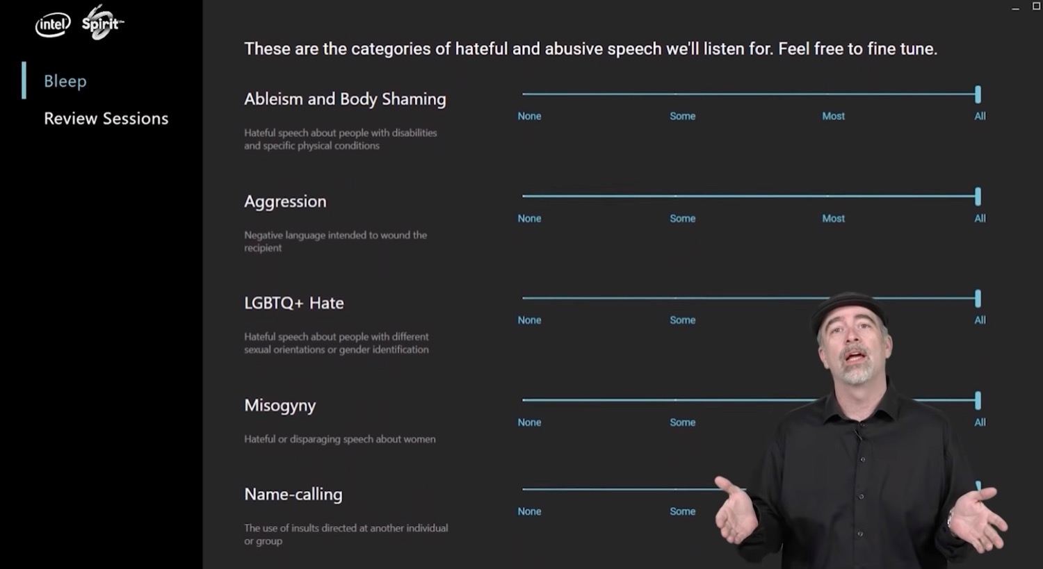 Intel hat auf seiner GDC-Präsentation eine etwas kontroverse Software vorgestellt – bei Bleep handelt es sich nämlich um eine künstliche Intelligenz, die ungewünschte Wörter in Sprach-Chats erkennen und ausblenden kann. Der Nutzer hat dabei die freie Wahl, welche Ausdrücke in Ordnung sind oder beispielsweise auch ob nur ein paar oder gleich alle rassistischen Bemerkungen ausgeblendet werden.