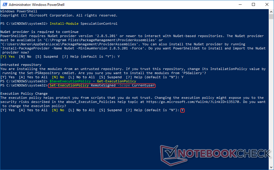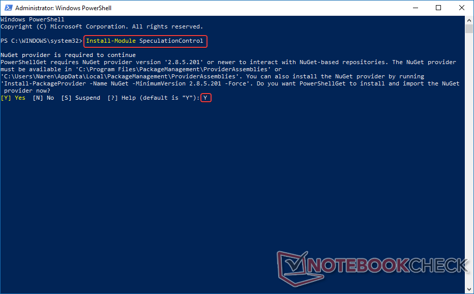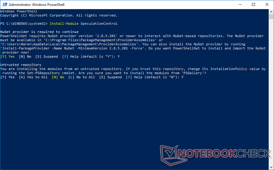 Install-Module SpeculationControl eingeben und Enter drücken.