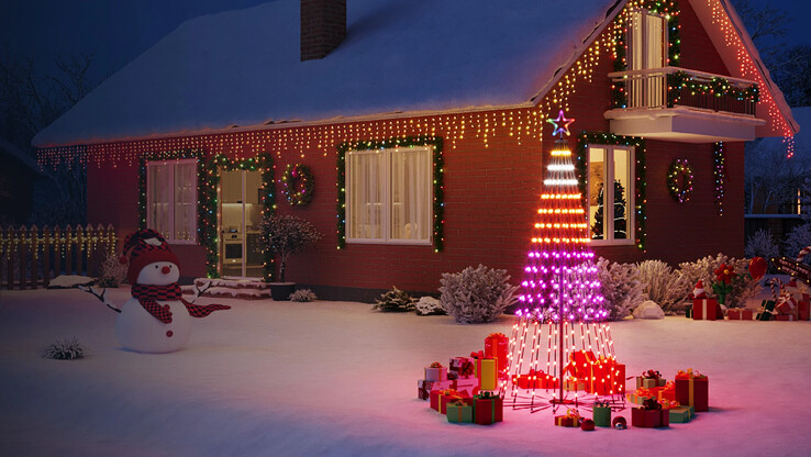 Die Govee Cone Tree Lights bestehen aus einer smarten Lichterkette und einem Gestell. Zusammengebaut bilden sie einen stilisierten Weihnachtsbaum für den Außenbereich. Wie man es von Govee kennt, kann dieser nicht nur in 16 Millionen Farben leuchten, sondern mit über 80 Szenen beispielsweise auch zum Rhythmus von Musik blinken. Dazu ist er vernetzbar, unter anderem mit Matter.