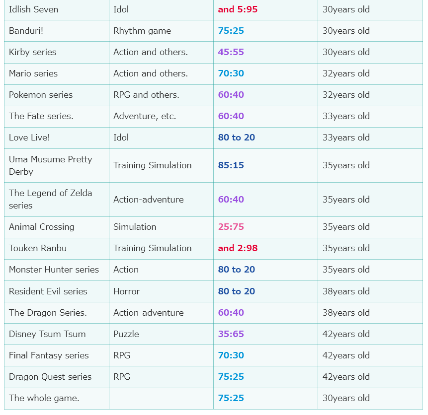 Natürlich haben auch Switch- und Switch 2-Spiele eine eine enorme Anhängerschaft in Japan. Nintendo hat den Ruf, familienfreundlich zu sein und ein jüngeres und älteres Publikum zu begeistern. Splatoon-Spieler sind im Durchschnitt 27 Jahre alt, während die Spieler der Mario- und Pokémon-Serien Anfang 30 sind. Die Ergebnisse zeigen, dass Nintendo mehrere demografische Gruppen anspricht.