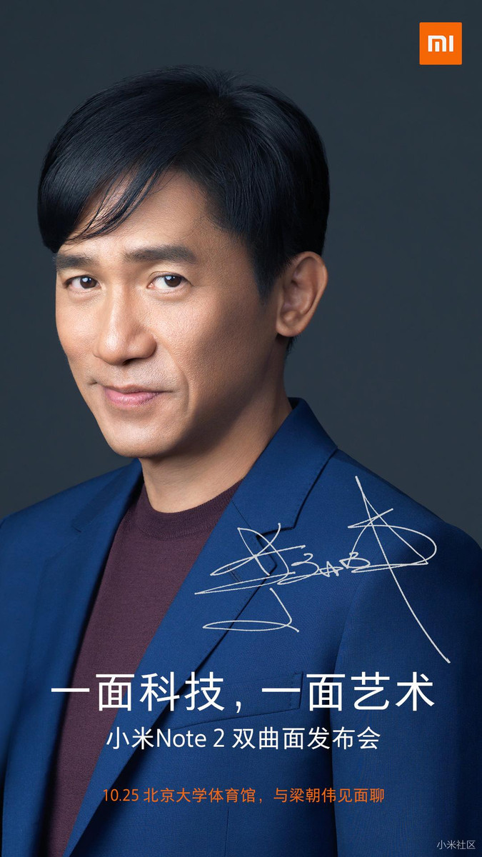 Das Mi Note 2, der Nachfolger des Mi Note aus dem vorigen Jahr wird am 25. Oktober offiziell angekündigt. Für das offizielle Event hat Xiaomi den in China populären Schauspieler Tony Leung angeheuert, der auch gleich im Teaser-Poster zu sehen ist. Dass auf der offiziellen Weibo-Seite des Unternehmens von einem "gebogenen" Note 2 aus gepostet wurde, sehen viele als Beweis dafür, dass das Mi Note 2 zumindest in einer Variante tatsächlich das erste Xiaomi-Smartphone im Samsung "edge"-Look werden könnte. Dahingehende Gerüchte gab es ja schon mehrmals.