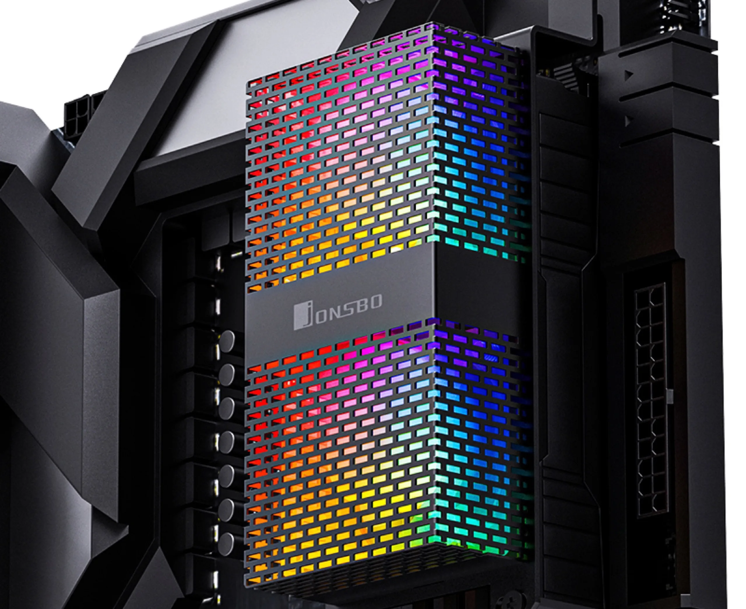 Die beiden Lüfter können zwischen 600 und 3.600 Umdrehungen pro Minute erreichen, selbst bei maximaler Geschwindigkeit soll eine Lautstärke von 22,4 dB nicht übertroffen werden. Die 12-Volt-Lüfter sind mit 5-Volt-RGB-LEDs bestückt, der Stromverbrauch liegt bei insgesamt rund 2 Watt. Die Lüfter sitzen über den Arbeitsspeicher-Modulen, und sorgen für entsprechenden Airflow, wie effektiv der Jonsbo NF-1 aber tatsächlich ist, werden erst ausführliche Tests zeigen.