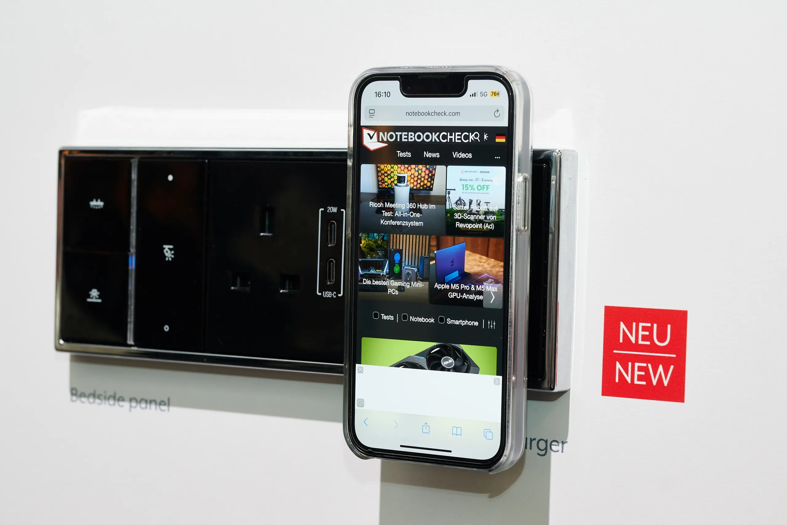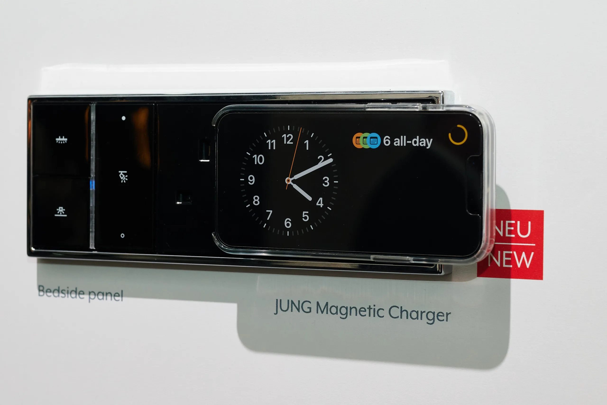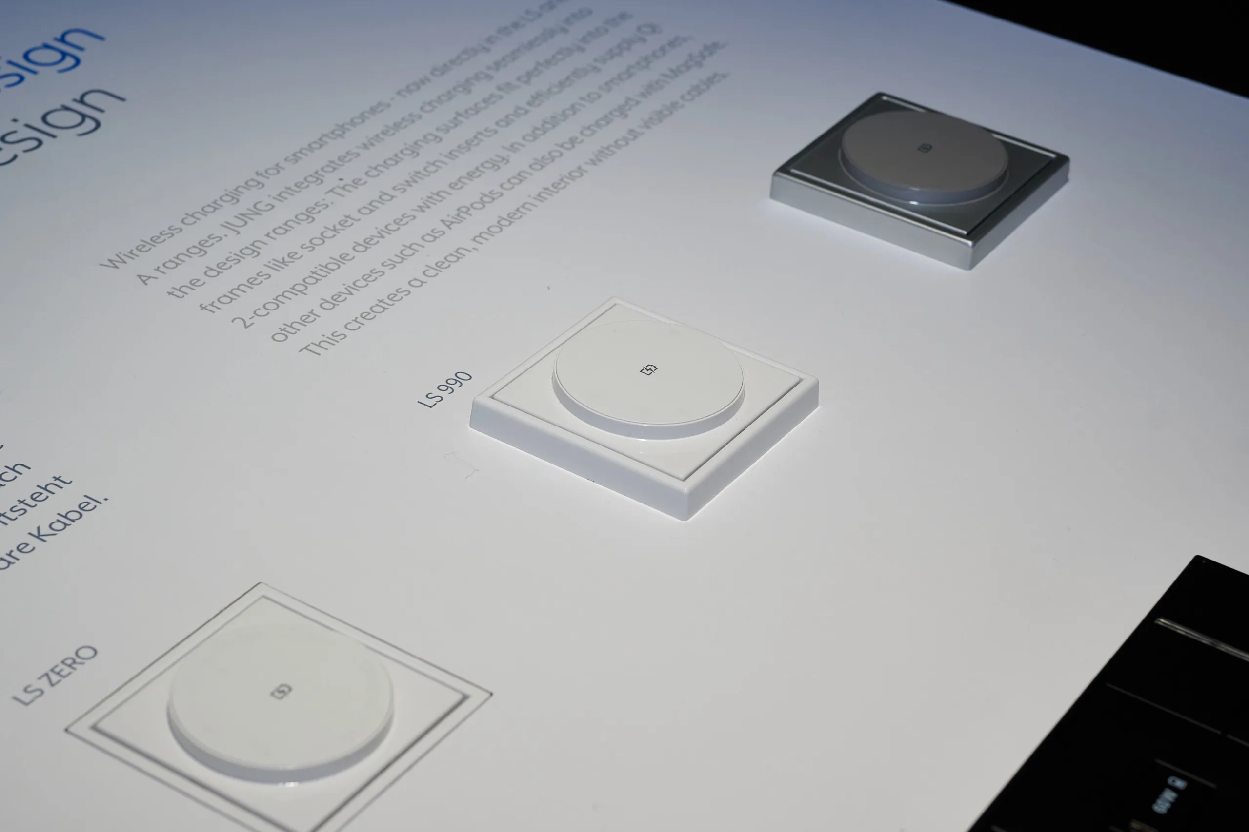 Auf der Light+Building zeigte das Unternehmen beide Fälle, also sowohl die Montage auf einem Tisch, hier bräuchte es dann aber nicht zwangsweise die Magneten, oder etwa an einer Wand. Allerdings unterstützt Jung noch nicht den Qi2-25W-Standard, beschränkt sich also auf 15 Watt.
