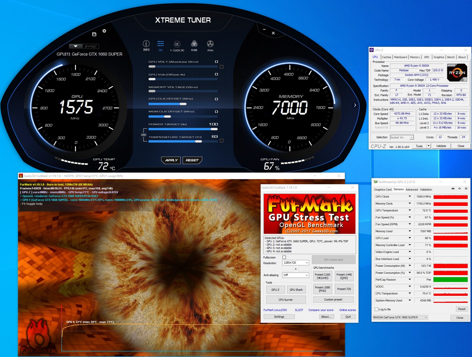 Obwohl die GeForce GTX 1660 Super keine Erhöhung des PT zulässt haben wir versucht noch etwas mehr Leistung aus dem Pixelbeschleuniger zu quetschen. Mit der hauseigenen 1-Click-Option lässt sich die GPU mit dem Xtreme Tuner um 15 MHz übertakten. In der Praxis ist das allerdings kaum zu spüren.