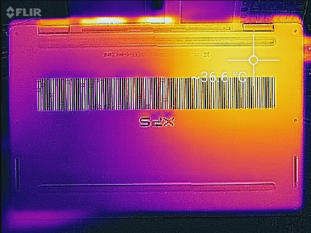 Obwohl das XPS 15 9575 leichter und dünner ist, haben beide Geräte ähnliche Oberflächentemperaturen zwischen 45 (vorne) und 50 °C (hinten). Dell erreicht dies durch die Verwendung von speziellen Gore-Isolatoren, welche nur in XPS Notebooks eingesetzt werden.