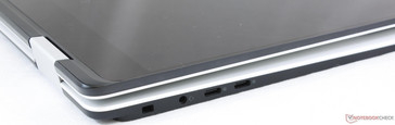 HP ist, was die Anschlussausstattung betrifft, eindeutig im Vorteil. Ein SD-Kartenleser in voller Größe sowie HDMI- und USB-Typ-A-Anschlüsse fehlen alle beim XPS 15 0575. Selbst der Lautstärkeregler ist nur auf dem HP Notebook zu finden. Dell Besitzer sollten darauf gefasst sein, immer einen Typ-C-Adapter mitzuführen, da das Gerät so gut wie nichts anderes als vier USB-Typ-C-Ports bietet.