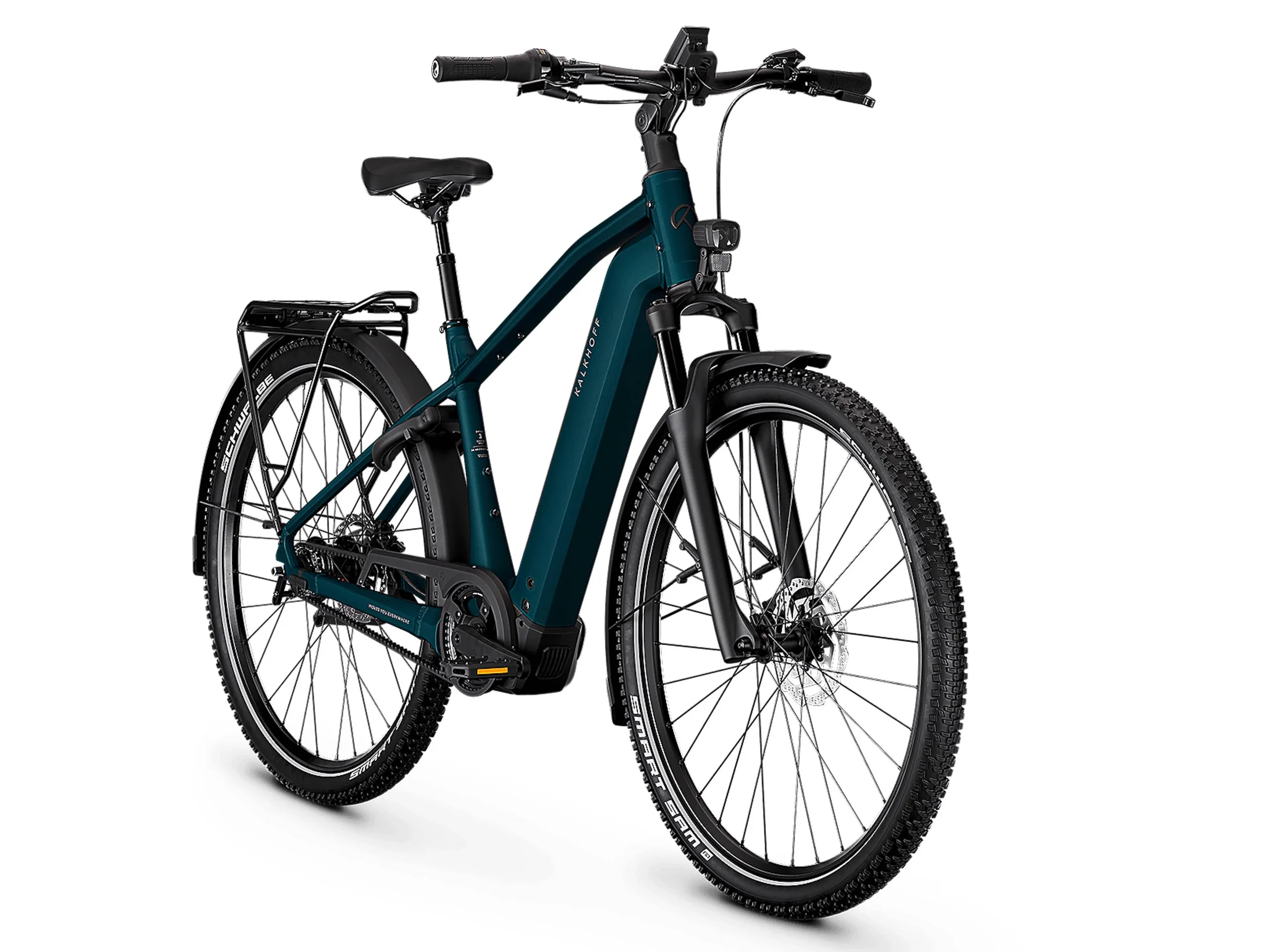 Genutzt wird der Performance Line CX-Motor von Bosch, welcher mit einem Drehmoment von bis zu 100 Nm aufwarten kann. Der Motor unterstützt wie hierzulande erlaubt bis zu einer Geschwindigkeit von 25 km/h und mit einer Nenndauerleistung von 250 Watt. Gespeist wird das Modell von einem Akku mit einer Kapazität von 600 Wh gespeist. Kalkhoff nutzt keine Kette, sondern ein im Prinzip wartungsfreien Carbonriemen von Gates in Kombination mit einer Nexus-Nabenschaltung von Shimano und mit fünf Gängen.