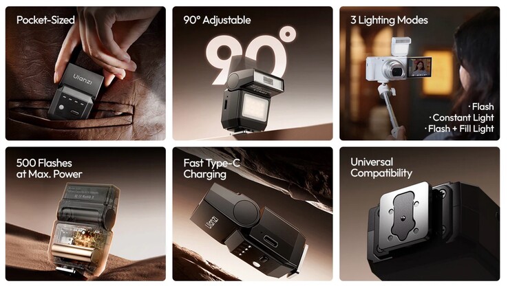Der neue Ulanzi SL03 setzt auf eine ähnliche Ausstattung wie der Ulanzi SL02 (ca. 29 Euro auf Amazon), allerdings spendiert der Hersteller dem kompakten Blitz zwei bedeutende Upgrades. Erstens sitzt der Blitz an einem Scharnier, das es ermöglicht, diesen nach oben zu klappen, um indirekt zu blitzen. Zweitens verbaut Ulanzi einen größeren Akku, der 500 Blitze mit voller Leistung ermöglichen soll.