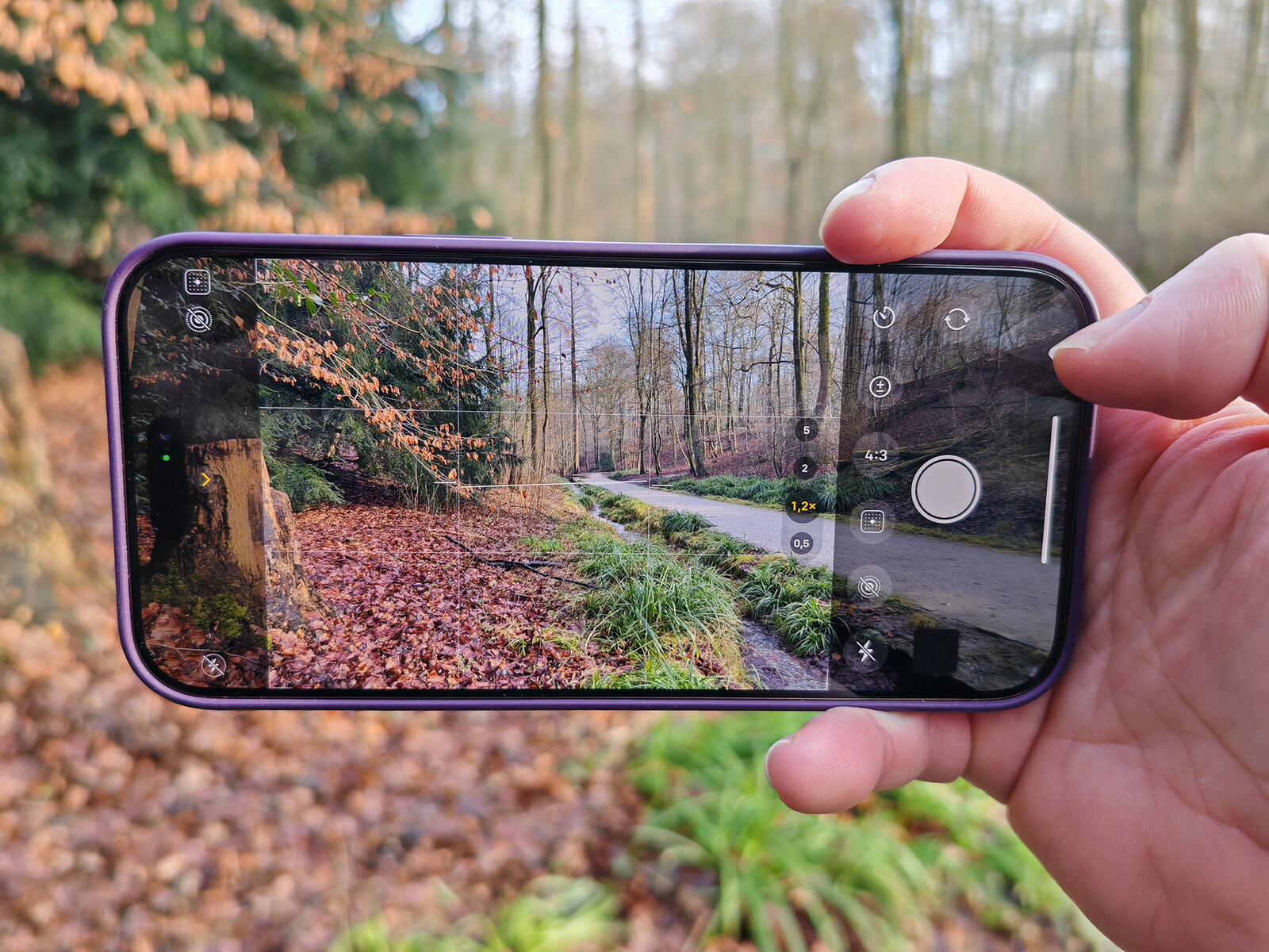 Beim Motiv mit dem Baumstamm stellt das iPhone das ganze Motiv scharf, was jedoch in deutlich nachgezeichneten Details mündet, da auch die Lichtverhältnisse hier schwieriger sind. Letzteres macht sich auch bei der Sony-Kamera bemerkbar, welche hier versucht mit längeren Belichtungszeiten mehr Licht einzufangen. Die Verschlusszeit von 1/50 Sekunde ist zwar noch gut freihandtauglich, jedoch können kleine Bewegungen hier schon zu Unschärfen und Verwackler führen. Die ZV-E10 II erreicht zwar potentiell die ansprechenderen Resultate, jedoch ist das iPhone hier wieder unkomplizierter und insbesondere für den Einsatz auf Social Media ist das erstellte Bildmaterial richtig gut.