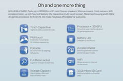 Zur weiteren Ausstattung des Tablets für Kinder gehören bei einem Gewicht von lediglich 325 Gramm ein Gummi-Cover, 8 GByte Flashspeicher, WLAN, ein Micro-SD-Kartenslot für Speicher bis 32 GByte, Stereolautsprecher und eine Frontkamera. Laut Karuma misst das Playbase 204 x 122 x 9,7 Millimeter und bringt es auf eine Akkulaufzeit von bis zu 5 Stunden.