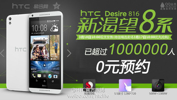 Aktuell überbieten sich HTC und Nokia auf Weibo.com bei den Meldungen zu den Vorbestellungen ihrer neuen Smartphones HTC Desire 816 und Nokia X. Jeder der beiden Hersteller schreit mit einem bunten Hurrabild: "Mehr als 1 Million Vorbestellungen". Zuvor berichteten taiwanische Quellen davon, dass HTC für sein, zum MWC 2014 vorgestellten Mittelklasse-Smartphone Desire 816, innerhalb von 3 Tagen rund 450000 Vorbesteller gefunden hatte.