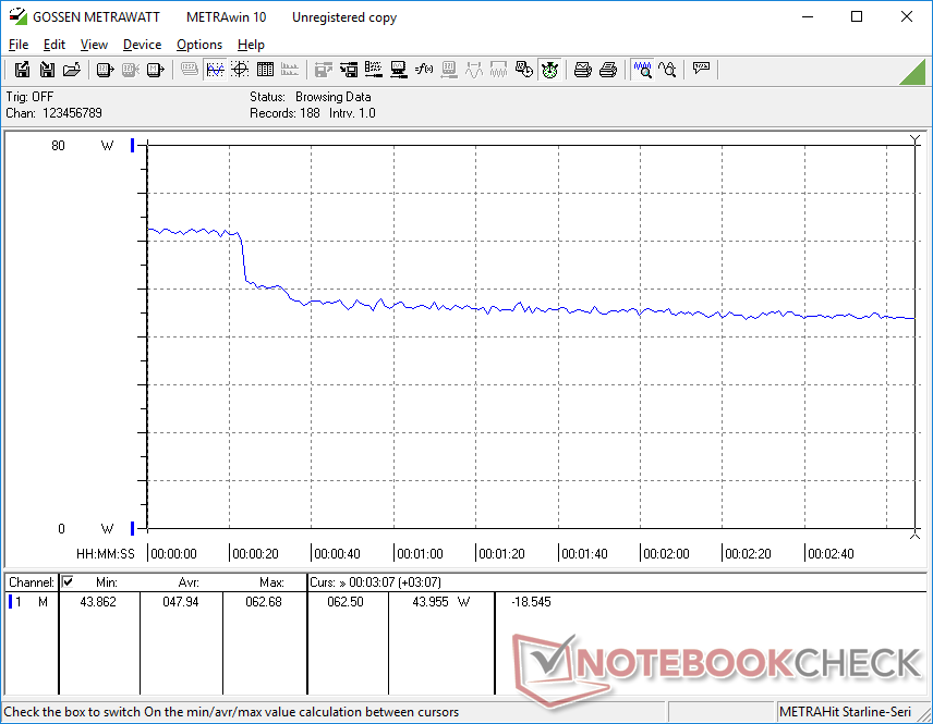 Im Leerlauf liegt der Verbrauch zwischen 6 und 14 Watt, wegen dem stromhungrigen OLED-Display ist diese Spanne also etwas größer als bei den meisten anderen Subnotebooks. Wie wir in einem anderen Artikel bereits erklärt haben, verbrauchen OLED-Panel bei der Darstellung von bestimmten Farben mehr Strom als die farbunabhängigen IPS-Bildschirme.