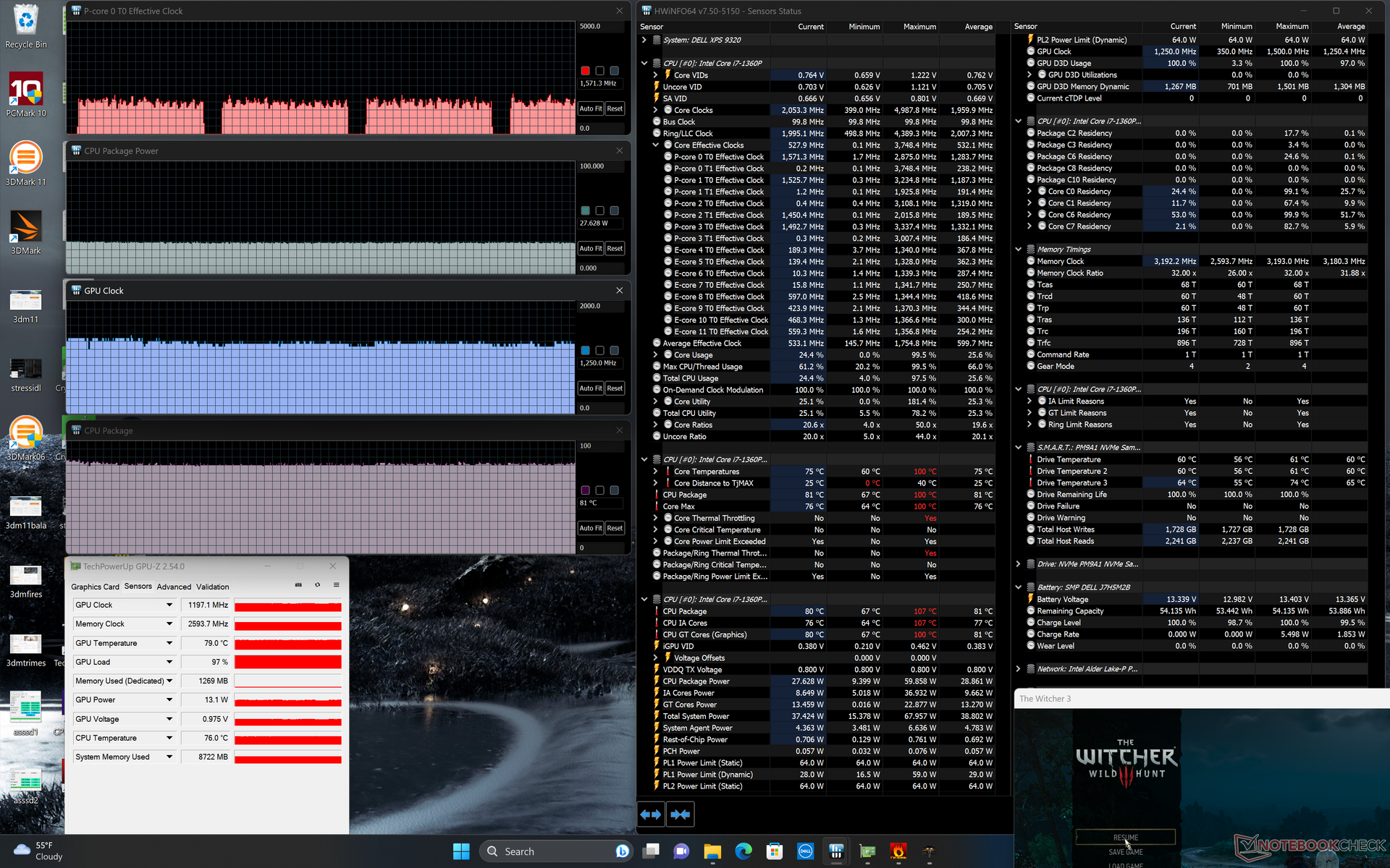 | Witcher 3 Stresstest | ~1.6 | 1250 | 81 |