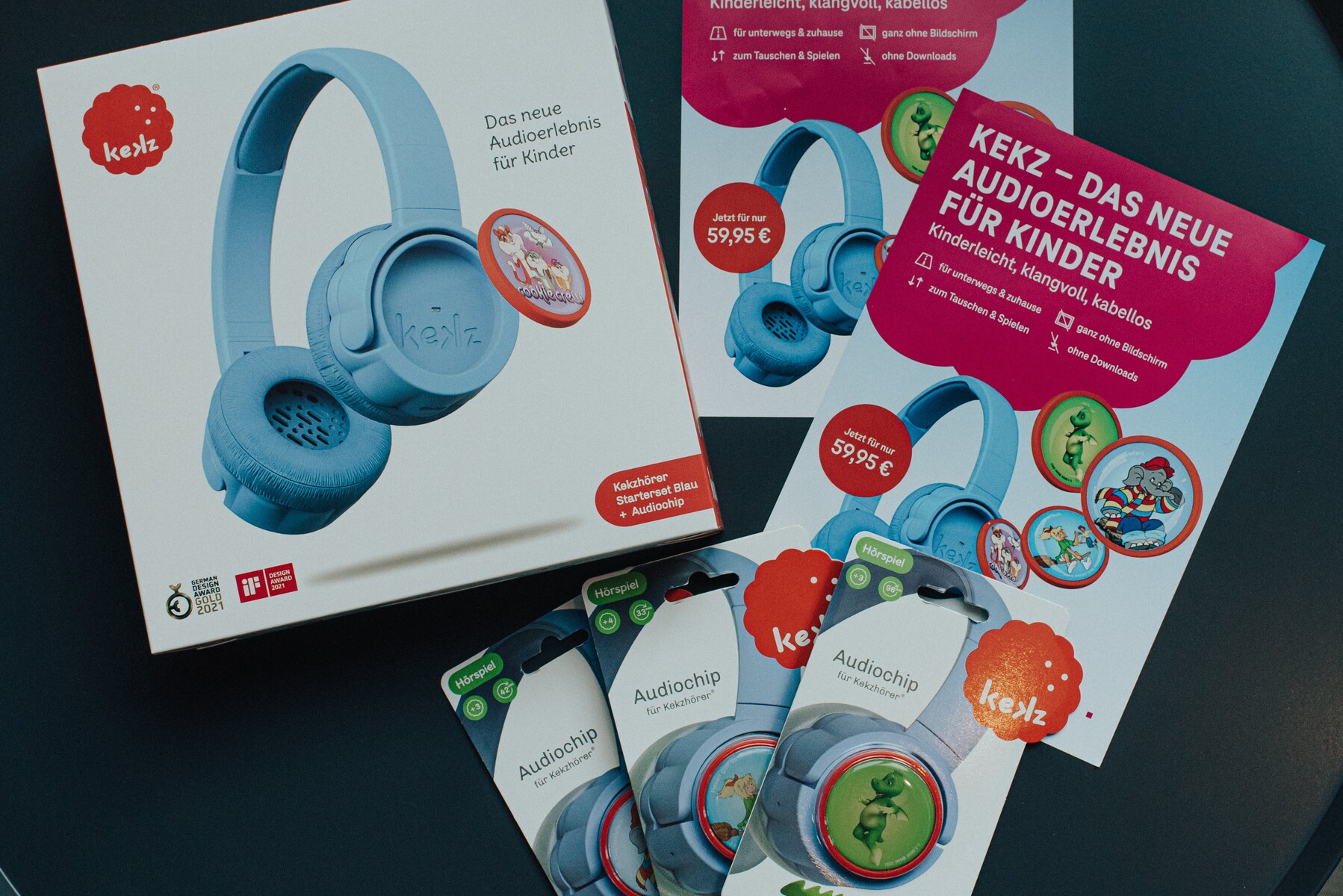 Auf dem Markt für kindgerechte Audiounterhaltung tummeln sich bereits viele Marken und Lösungen wie Tonibox, Tigerbox, Jooki, Dogbox, Catbox und Co. Jetzt sorgt der Kekz für bunte Konkurrenz. Das Kekz-Audiosystem für Kinder ab 3 Jahren für unterwegs und zuhause besteht aus dem kabellosen Kekz-Kopfhörer und den magnetischen Kekzen, die als NFC-basierte Audiochips einfach in die Ohrmuschel der Kekzhörer geklickt werden.