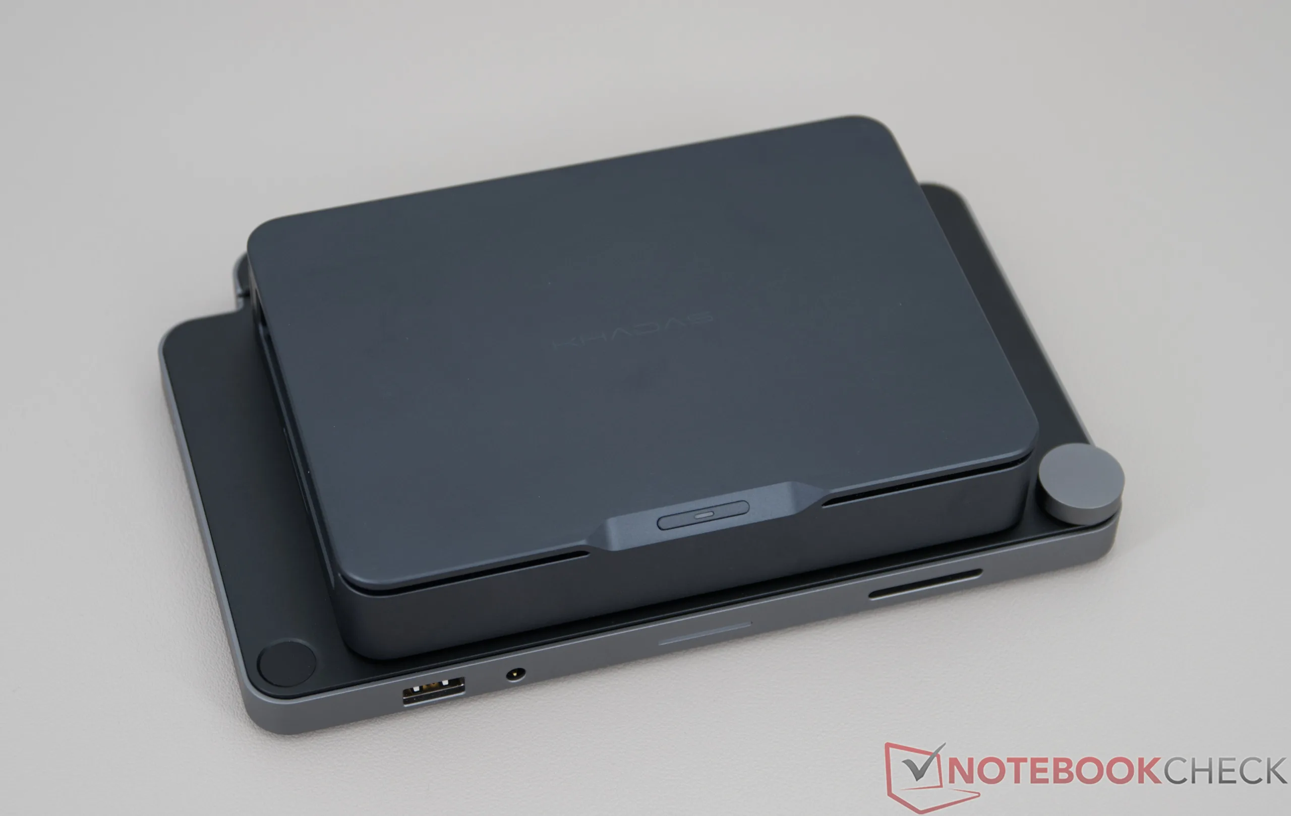 Im Test zeigt sich der Mini-PC zudem effizient und vergleichsweise leise, was auch auf das überarbeitete Kühlsystem zurückzuführen ist. Praktisch ist darüber hinaus der integrierte Akku, der einen längeren Stand-by-Betrieb ermöglicht und kurzfristig sogar einen Betrieb ohne Netzteil ermöglicht.