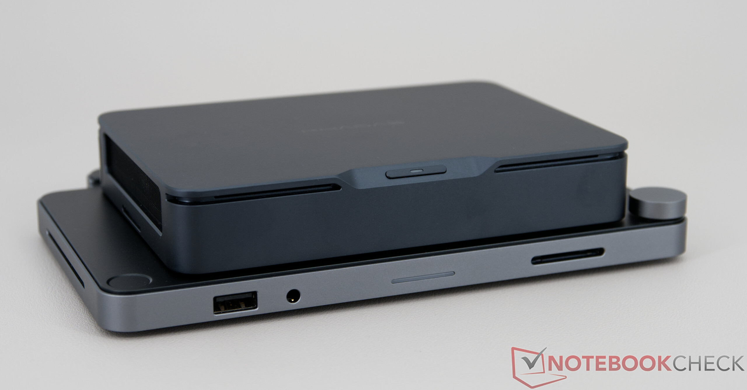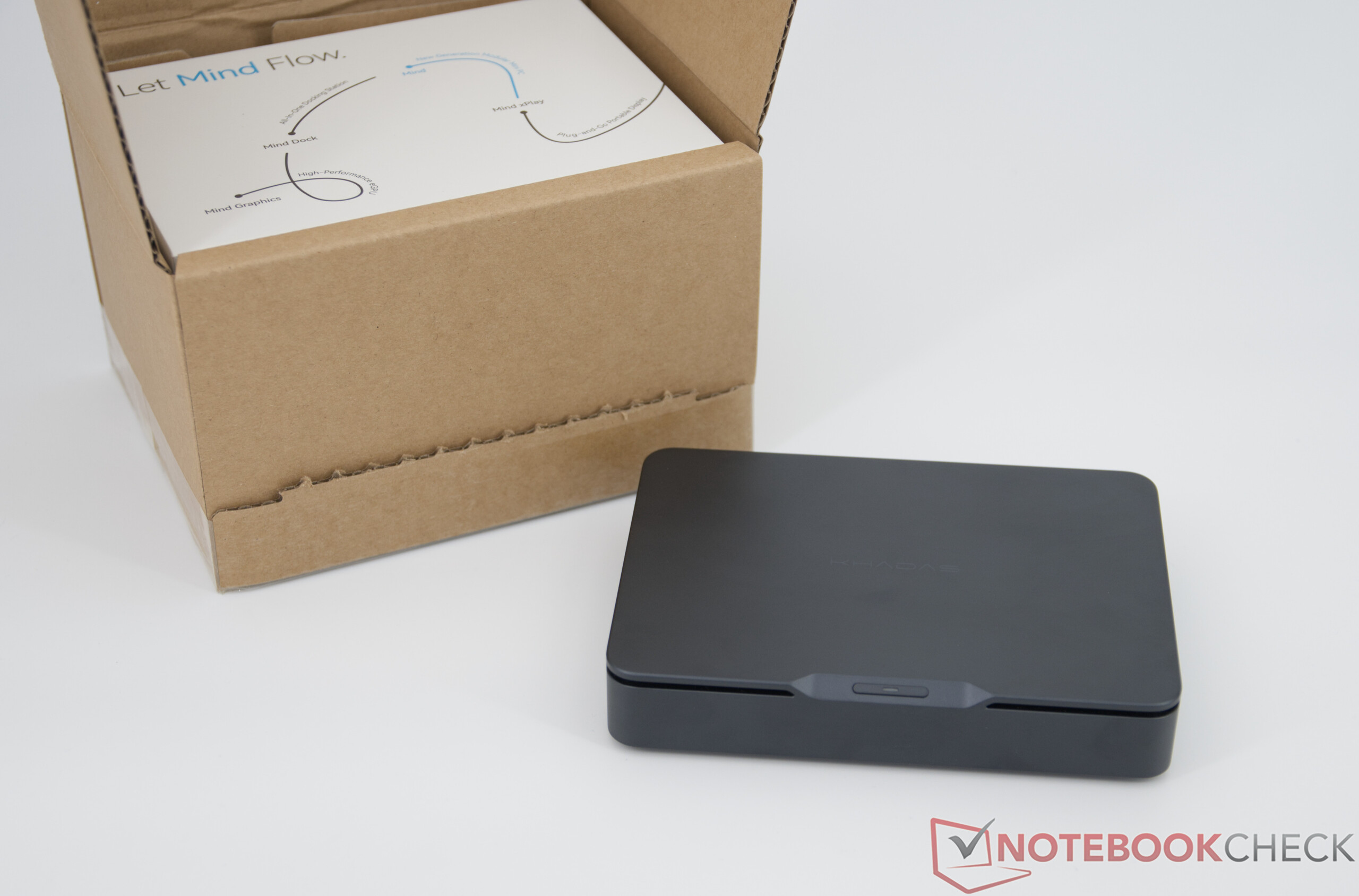 Der Lieferumfang fällt bewusst minimalistisch aus: In der Verpackung befinden sich lediglich der Mini-PC selbst sowie ein 100-Watt-Netzteil inklusive USB-C-Kabel. Optionales Zubehör wie das Mind Dock, das Mind Leather Case oder das Mind Graphics 2 Dock muss separat erworben werden. In Verbindung mit dem Mind xPlay lässt sich der Mini-PC zu einer Art Laptop-Ersatz erweitern, wodurch der Hersteller nahezu alle denkbaren Einsatzszenarien abdeckt.