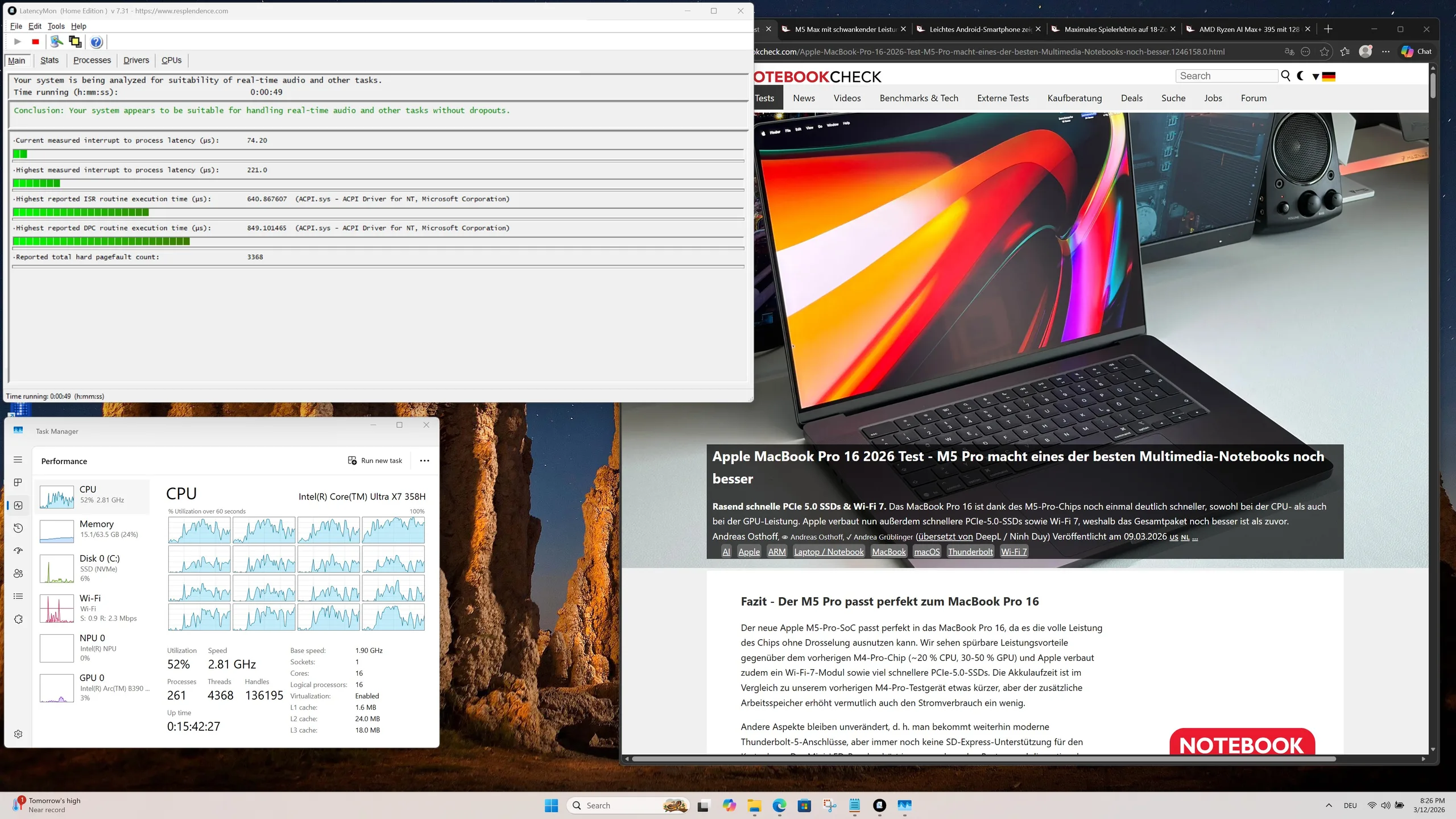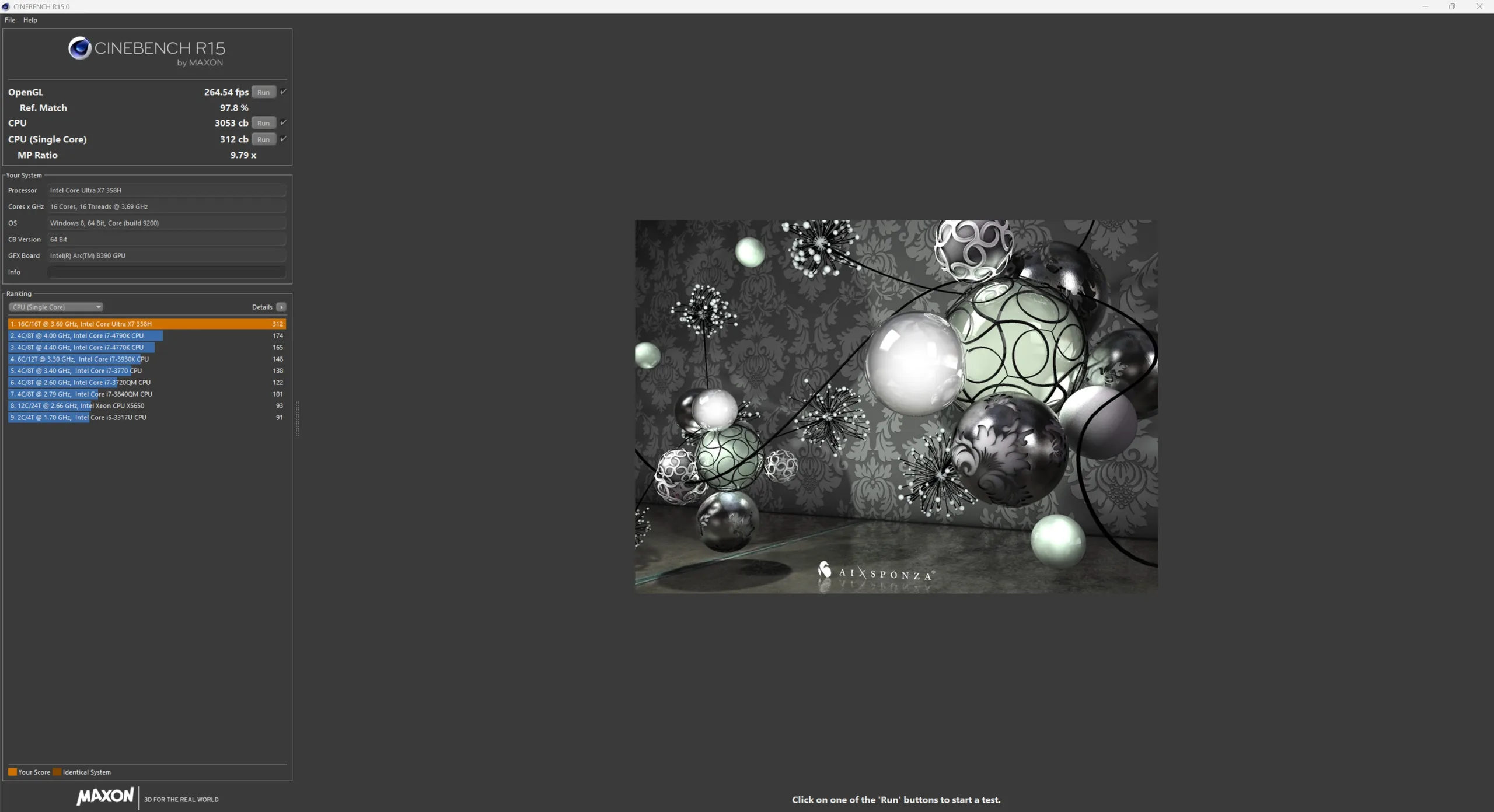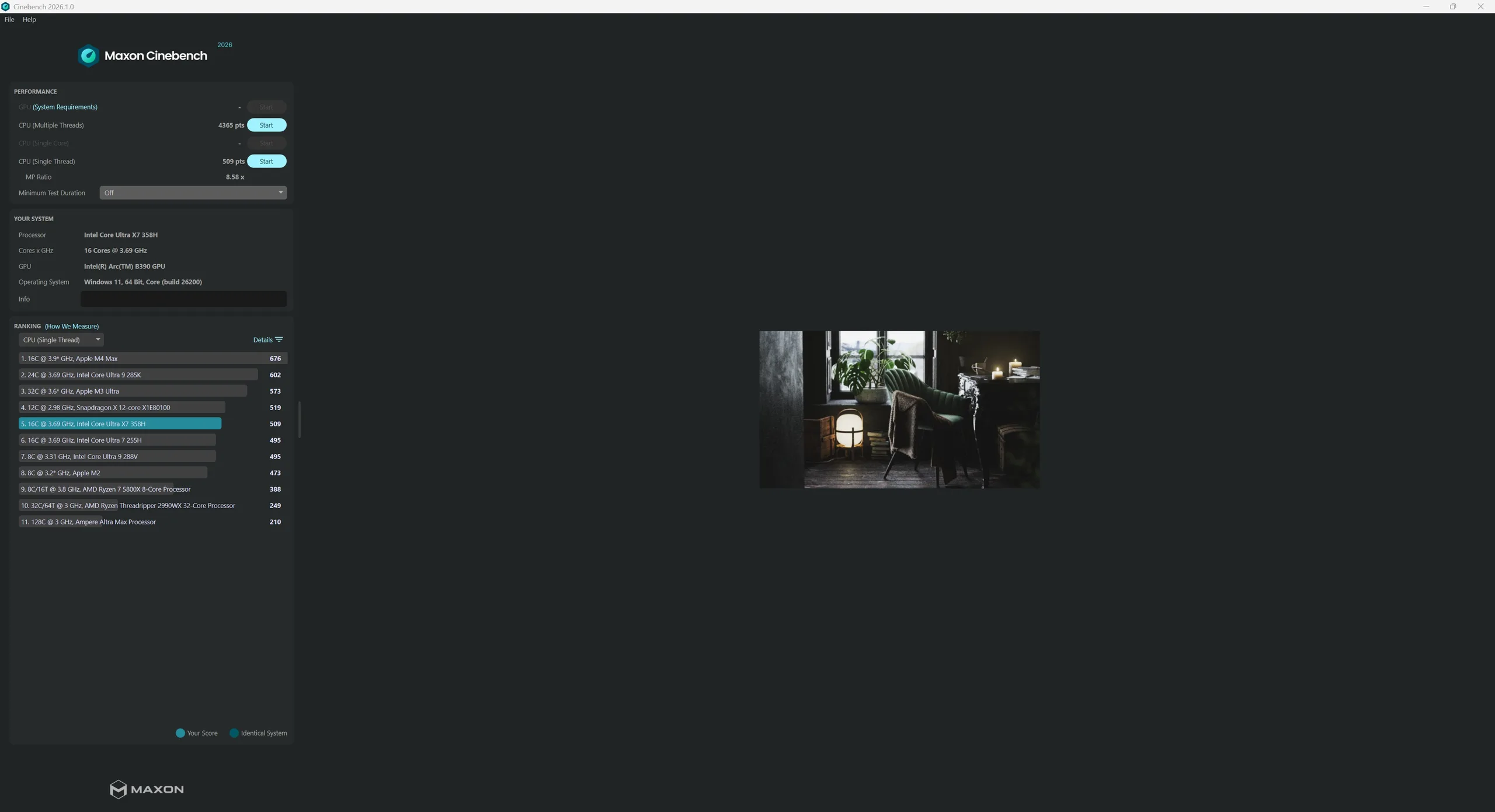 In synthetischen Benchmarks zeigt der Prozessor, dass er mit AMDs Ryzen-AI-9-Prozessoren mithalten kann. Anwendungen wie Rendering oder Videobearbeitung profitieren von der hohen Kernanzahl und den gesteigerten Taktraten. Gegenüber älteren Modellen der Mind-Serie fällt der Leistungszuwachs daher insbesondere bei stark parallelisierten Workloads deutlich aus.