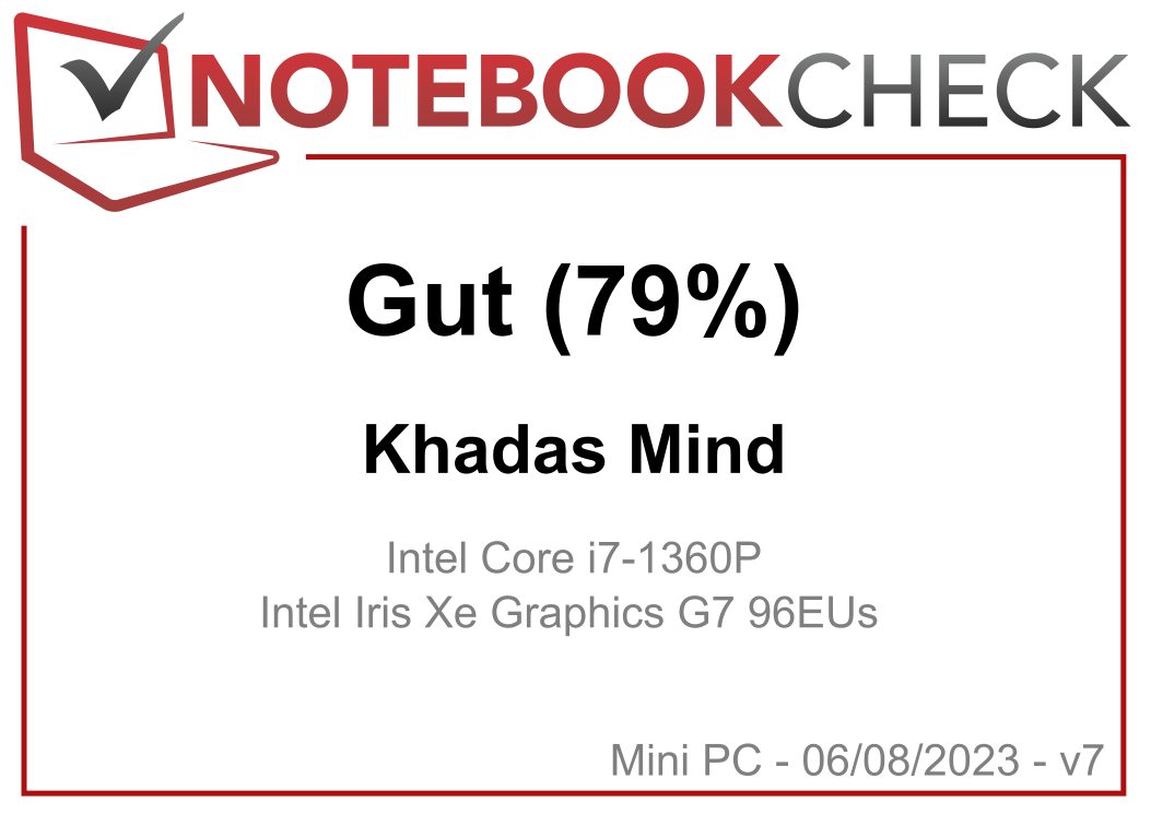 | 78.8 % v7 (old) | 08 / 2023 | Khadas Mind i7-1360P, Iris Xe G7 96EUs | 438 g | 20 mm | |