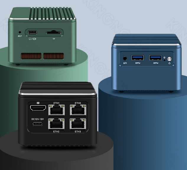 Beim M1 von Kingnovy handelt es sich um einen Mini-PC mit vier Netzwerkanschlüssen. Dementsprechend ist das Modell auch als Router einsetzbar. Dabei unterstützen die Ethernet-Anschlüsse jeweils eine Datenübertragungsrate von 2,5 Gbit/s, dementsprechend können auch schnelle Netzwerkspeicher performant angebunden werden. Für den Einsatz als Router müssen Nutzer dabei freilich selbst Software installieren, allerdings dürfte das System im Gegensatz zu fertigen Routern vielseitiger nutz- und konfigurierbar sein. Es kommt eine Intel i226-V-Netzwerklösung zum Einsatz.