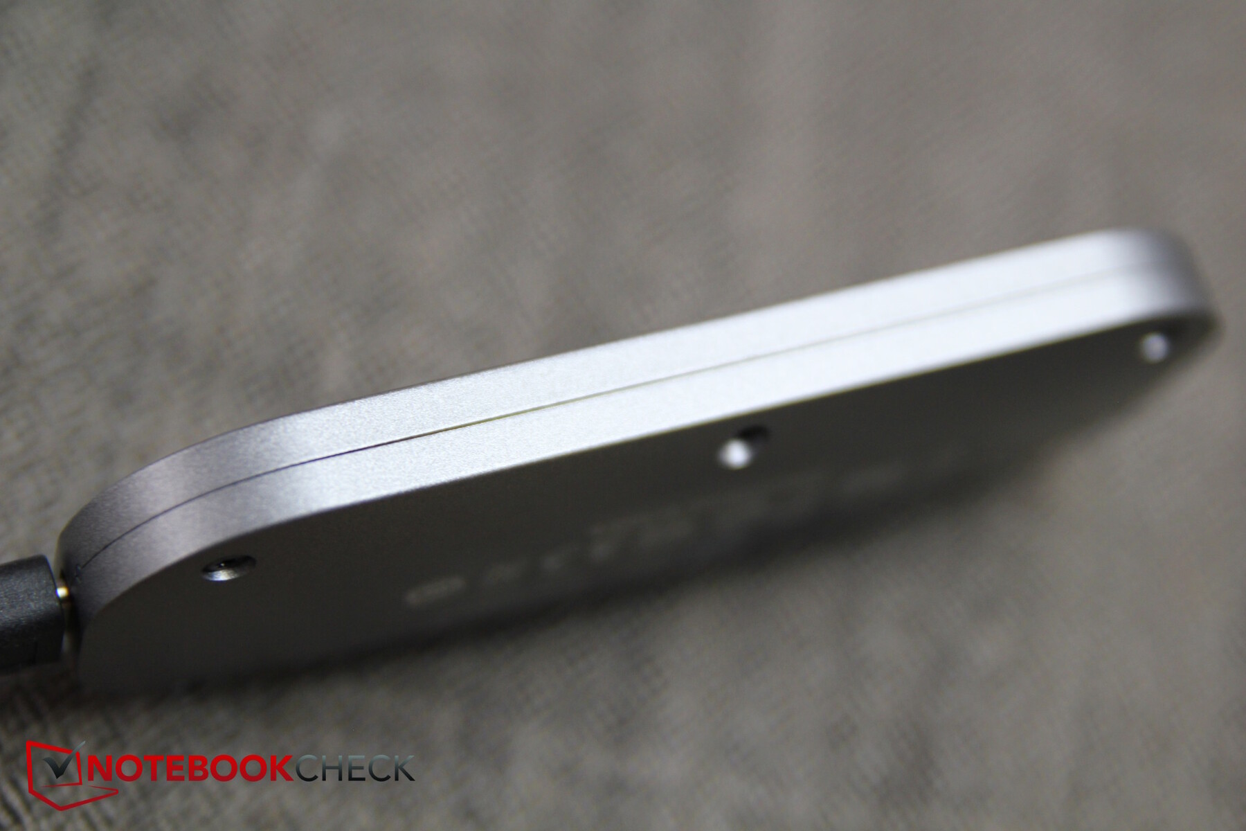 An den flachen Seiten des SSD-Gehäuses sieht man eine Trennlinie an der klar wird, dass das Case aus Ober- und Unterhälfte zusammengesetzt ist. An der Unterseite sieht man dann auch sechs Torx-Schrauben, welche das Gehäuse zusammenhalten.