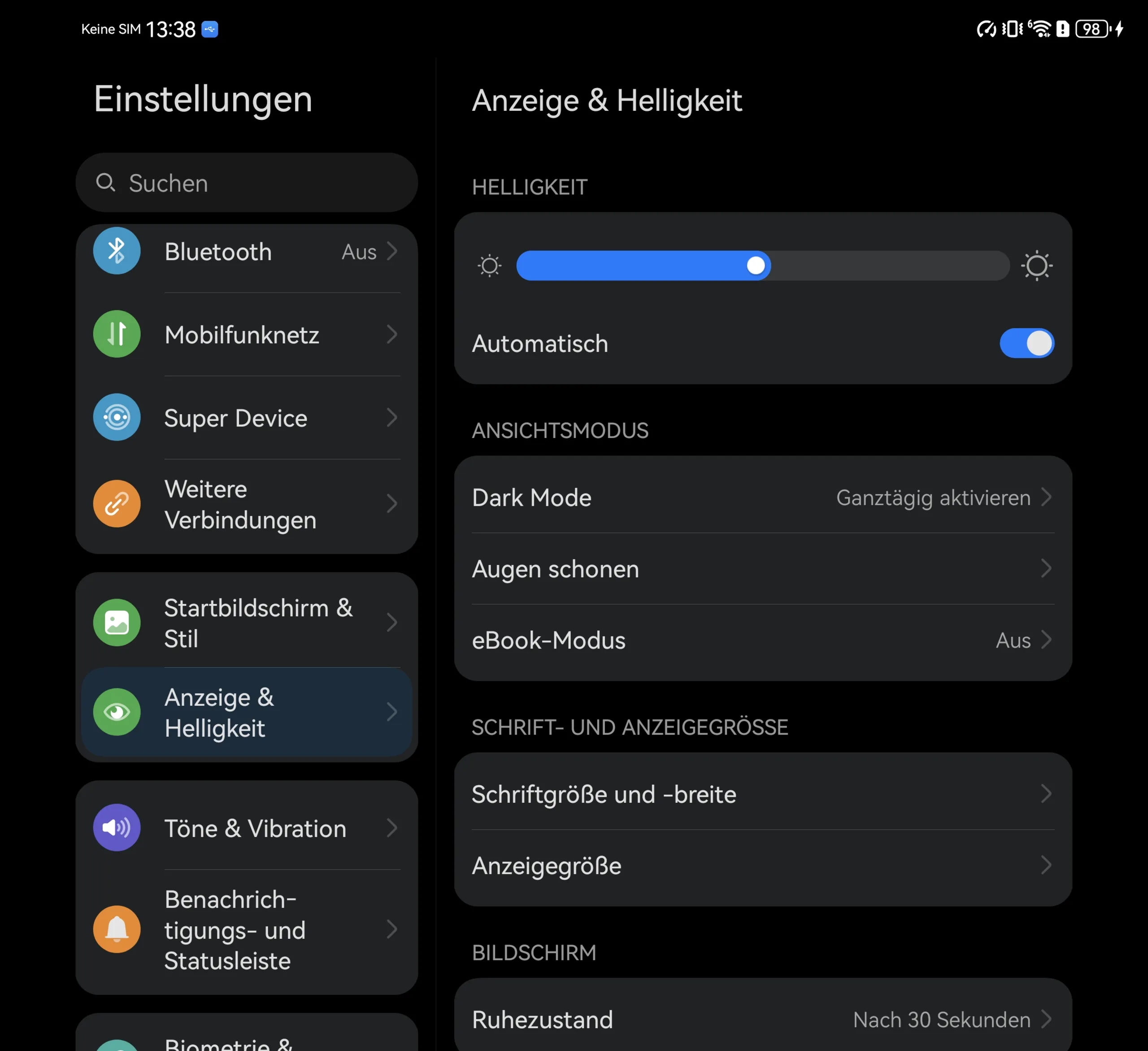 Die Farbdarstellung ist ebenfalls auf einem Niveau mit faltbarem Panel und sehr akkurat. Und auch beim PWM-Dimming geht Huawei keine Kompromisse ein und nutzt die gleiche Technik.