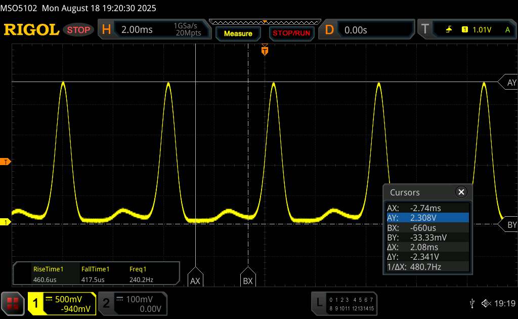 | Flackern / PWM festgestellt | 240 Hz Amplitude: 13.64 % Secondary Frequency: 480 Hz | ||