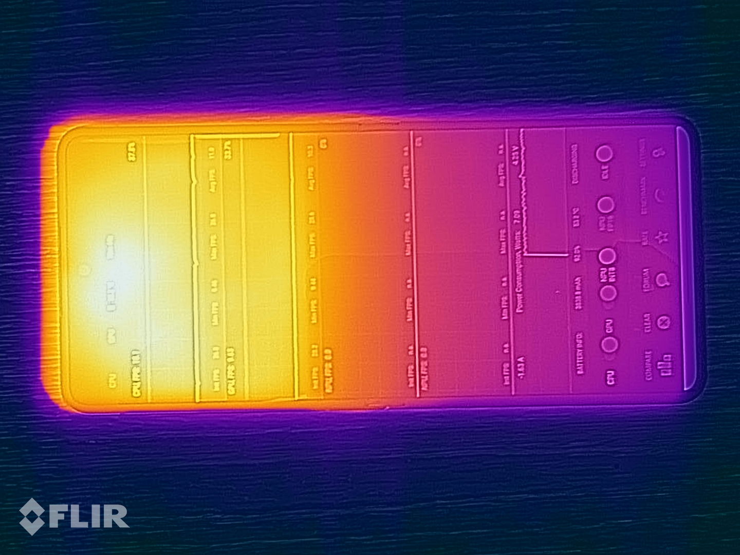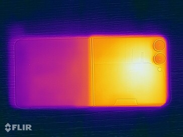 (-) Auf der Unterseite messen wir eine maximalen Wert von 49.7 °C (im Vergleich zum Durchschnitt von 34 °C).