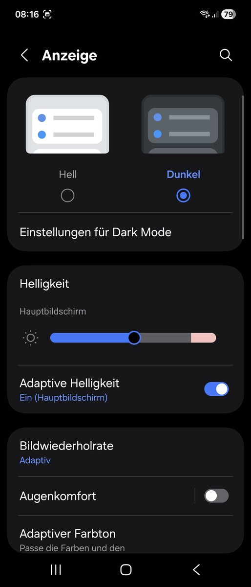 Zur Helligkeitssteuerung nutzt Samsung OLED-typisch Pulsweitenmodulation. Wir messen ein PWM-Flackern mit einer recht geringen Frequenz von bis zu 480 Hz.
